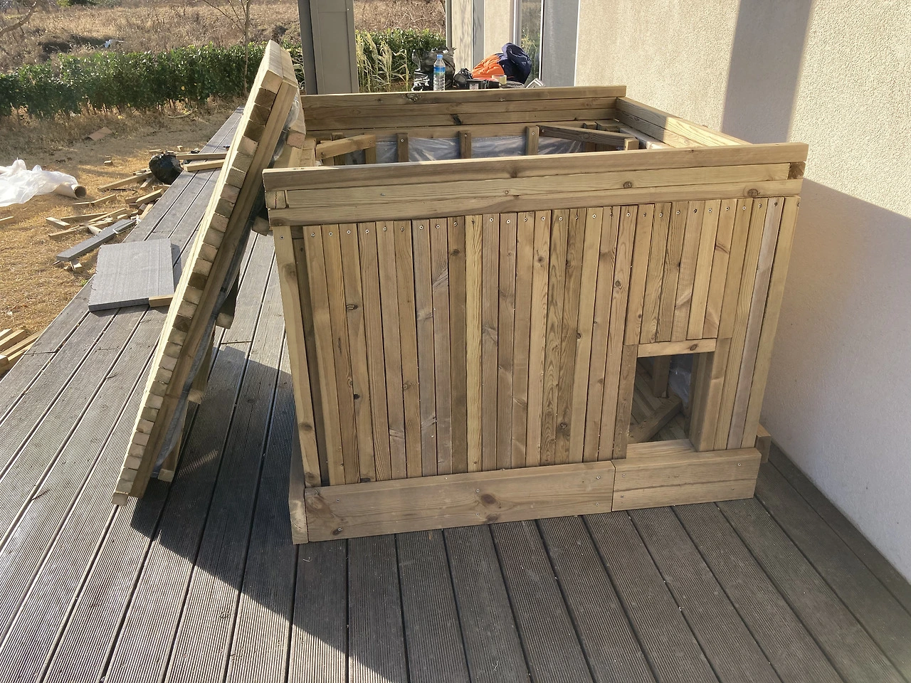 집 울타리도 둘이 직접 만들었는데 피스 박는 것쯤은 자신 있었다. 다만 문제가 하나 있다면 우리가 꽤 큰 고양이 집을 지으려 한다는 것이었다. 각재로 벽과 바닥, 지붕까지 빙~ 두르기 위해서는 두께 38mm 짜리 수십 개의 나무를 붙여야 한다. 손가락에 연기가 나도록 재단하고 드릴을 박아야 할 것이다.