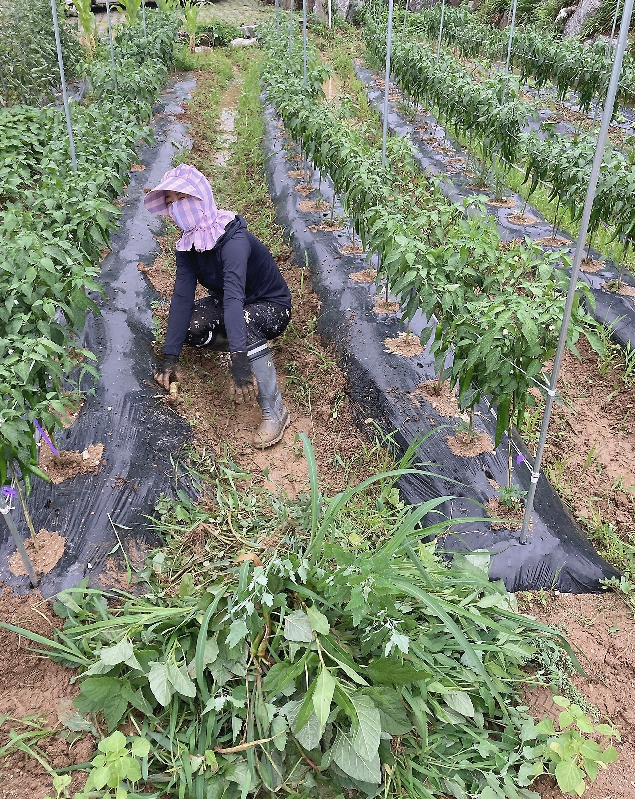 서있기만 해도 숨이 턱턱 막히는 여름의 한 가운데. 해가 째려보는 것 같은 따가운 뙤약볕 아래 쪼그려 앉아 고추를 땄다. 땀이 비처럼 쏟아졌다. 무릎이 뽑히는 것처럼 아팠다. 농사가 잘 돼도 너무 잘 됐다. 수확해야 할 고추가 산더미 같았다. ‘아이고… 나머지는 일어나서 따야지.’ 서서 몸을 계속 숙인 채로 일을 하려니 이번엔 허리가 부러질 것처럼 쑤셨다. 매운 근육통에 시달리면서 익는 순서에 맞춰 고추를 총 여섯 번 수확했다. 하나하나 손으로 따는 게 너무 힘들어서 농사 끝 무렵엔 빨갛게 물들어 가는 고추가 반갑지 않았다.