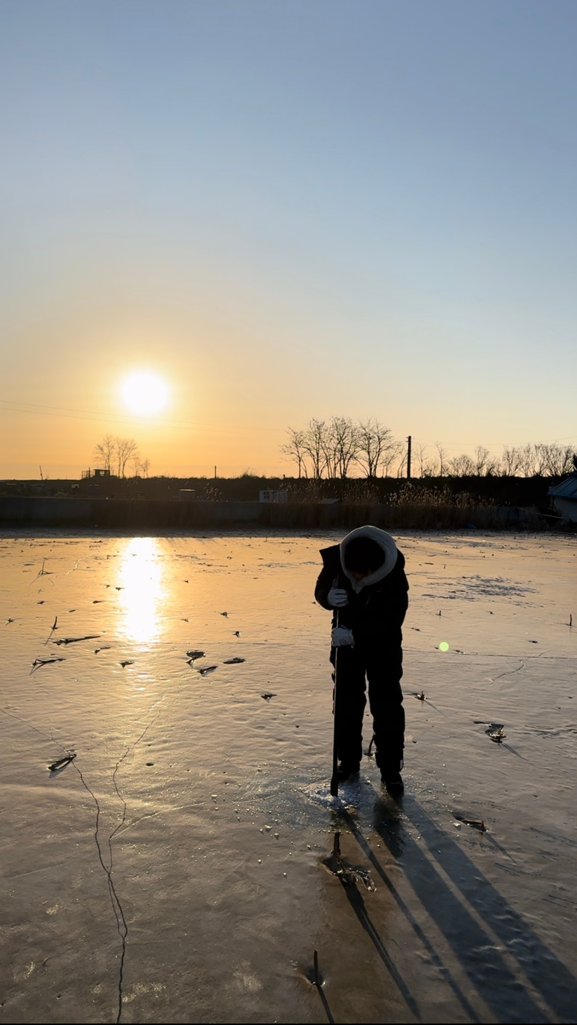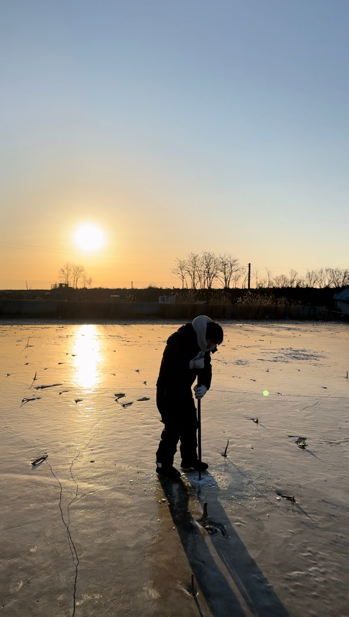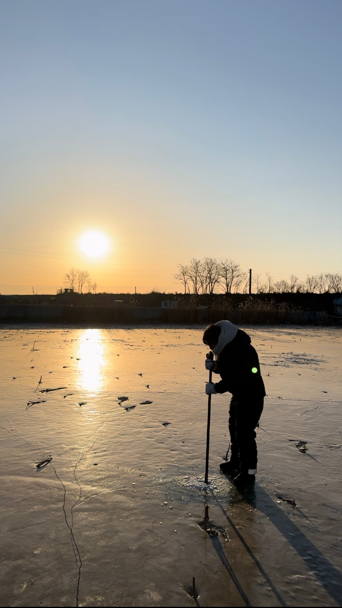 겨울 낚시는 시작부터 특별하다. 일단 얼음부터 뚫고 시작한다. 구멍 크기는 발보다 작아야 한다. 낚시가 끝나고 시간이 지나면 살얼음이 껴서 뚫려 있다는 게 보이지 않는다. 크기가 클 경우 다른 사람이 다니다가 발이 빠질 수 있기 때문에 지름은 붕어만 나올 수 있을 정도로 작게 한다. 낚시하는 사람들끼리 하는 서로를 위한 배려다.