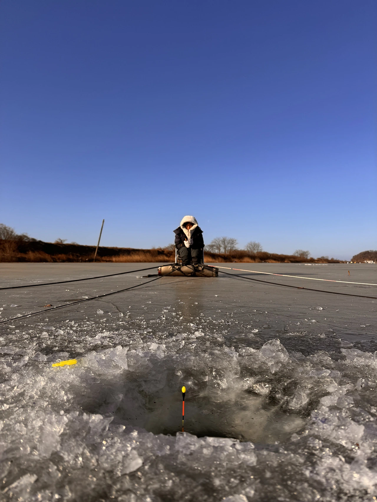 구멍에 낚싯대를 드리웠다. 땀이 식으면서 냉기가 찰싹 달라붙었다. 갑옷처럼 온몸에 두르고 온 붙이는 핫팩도 추위를 다 막아주진 못했다. 코에서 뜨거운 물이 주르륵 흘렀다. 코피인 줄 알았다. 콧물이었다.
