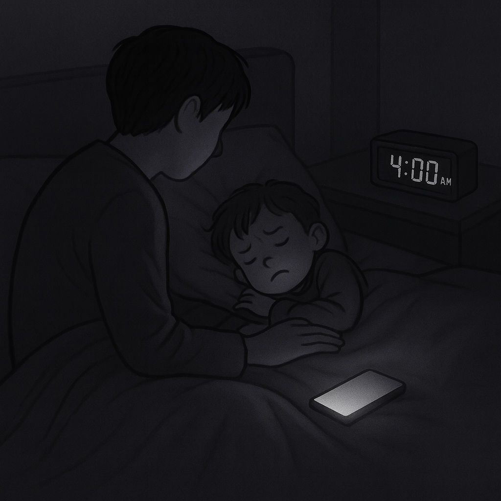그 짧은 진동에도 아이는 뒤척이더니 연신 기침까지 했다.