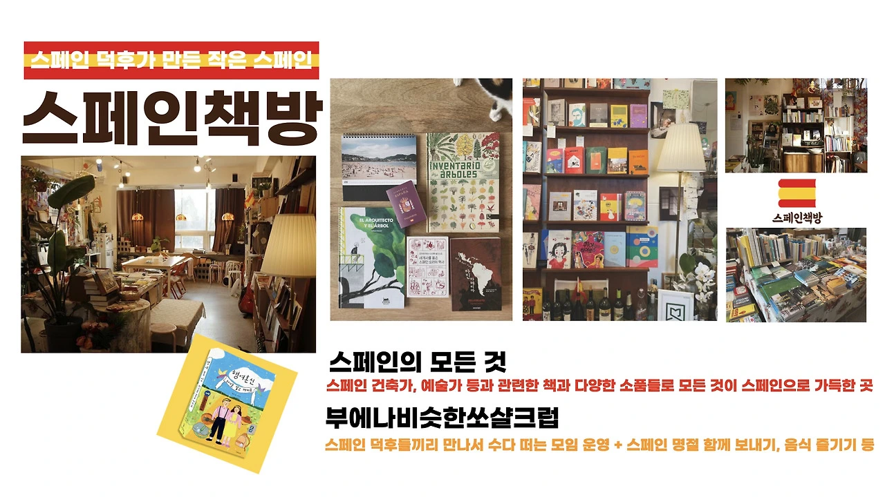 보다 극단적으로 취향에 집중한 서점인 스페인책방도 있다. 이곳은 오로지 스페인으로 가득한 곳이다. 스페인을 좋아하는 사람이라면 이곳이 대형서점보다 더 읽을거리가 많은 공간이 되지 않을까? 이렇듯 대형서점에서는 표류하던 사람들이 동네서점에서는 보다 많은 책들을 방향성 있게 찾아가게 된다는 점에서 대형서점의 약점이 동네서점의 강점이 되는 지점이라 볼 수 있다.