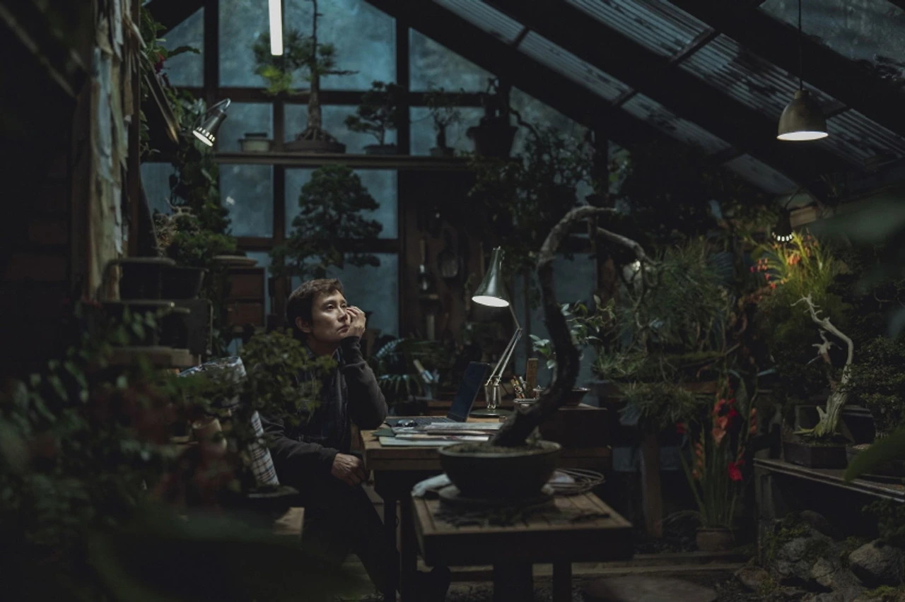 너무나도 많은 예술작품들에서 계절은 인생을 상징한다. 그래서인지 <어쩔수가없다>에서 역시 계절은 만수의 삶을 상징하는 것처럼 보여진다. 청춘을 의미하는 봄과 여름, 특히나 땀흘리며 고된 노동의 시간으로 치환되는 여름이라는 계절은 만수(이병헌)가 제지회사에 다니며 열심히 땀흘리던 계절을 의미한다. 그래서인지 첫장면에서 가족과 함께 고기파티를 준비하는 만수의 모습은 뜨거운 태양 아래에서 일하는 노동자와 같은 모습으로 보여지며 표정 역시 밝지만은 않다. 하지만 이윽고 화면의 톤이 노을이 지듯 변하는 순간이 생긴다. 만수가 가족들을 끌어안고 행복해하는 그 시점. 바로 여름내 일군 열매가 익고 수확하는 풍요로움의 계절 바로 가을을 의미한다. 아니나 다를까 만수는 가족을 안은채 다이뤘다며 행복해한다. 하지만 알다시피 가을은 짧다. 그리고 찾아오는 혹독한 계절 겨울이 기다린다. 겨울은 만수가 직장에서 해고 된 차갑고 시린 계절로 표현된다. 고군분투 끝에 다시 찾게된 만수는 다시금 가을이란 계절을 되찾게 된다. 하지만 첫장면에서의 온화하고 넉넉한 톤의 화면과 달리 차갑고 어두운 톤의 화면이 인상적이다. 그리고 바베큐 파티를 제안하는 만수를 만류하며 미리(손예진)가 말한다. "아직 겨울이니까..." 남편 만수가 일궈낸 결과물의 비밀을 깨닫게 된 미리는 더이상 그 풍요로움의 가을로 돌아갈 수 없게 된 듯하다.