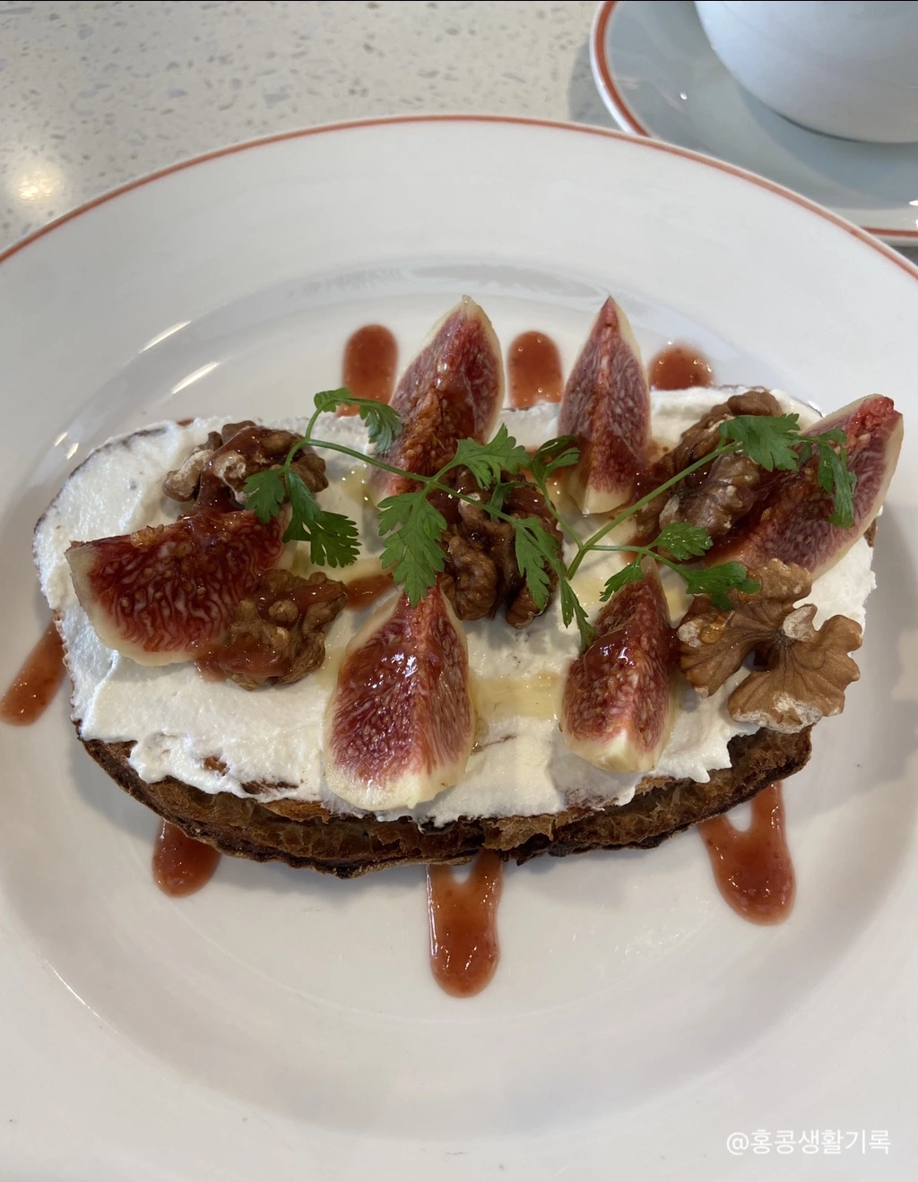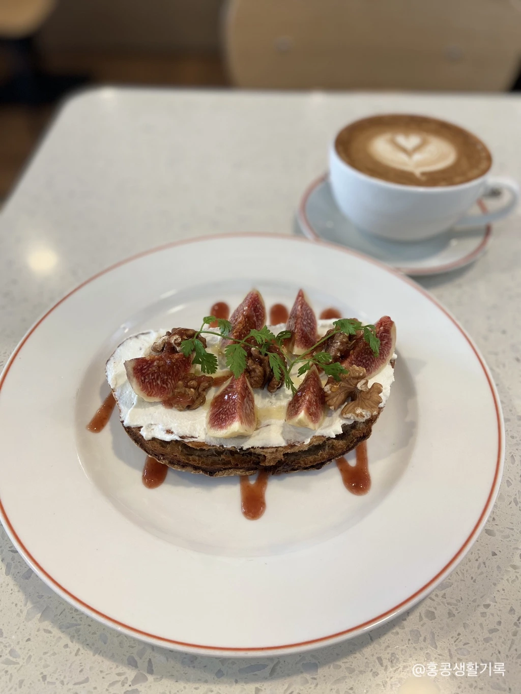 오래간만에 누리는 나만의 시간을 더욱 반짝반짝 빛내줄 무화과 리코타 치즈 토스트와 플랫 화이트를 주문했다.
