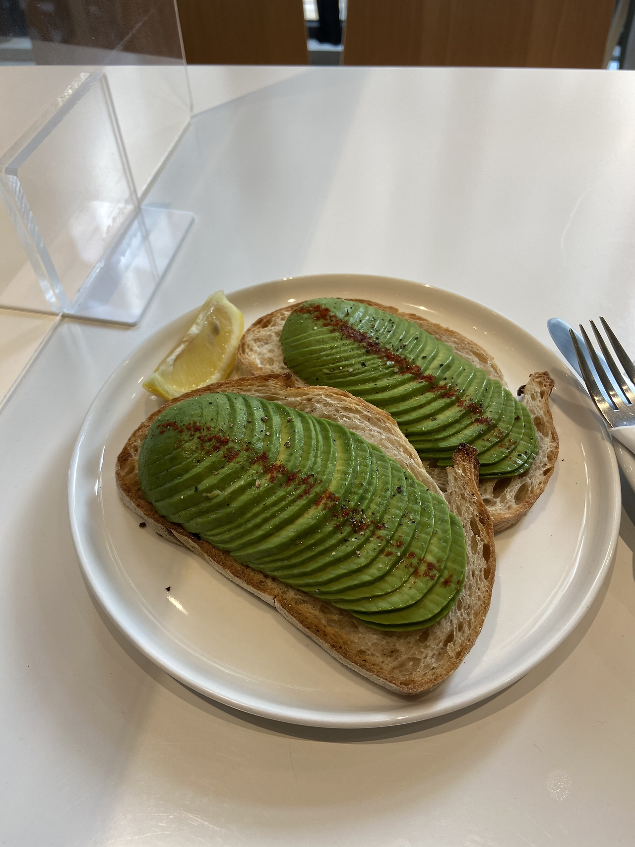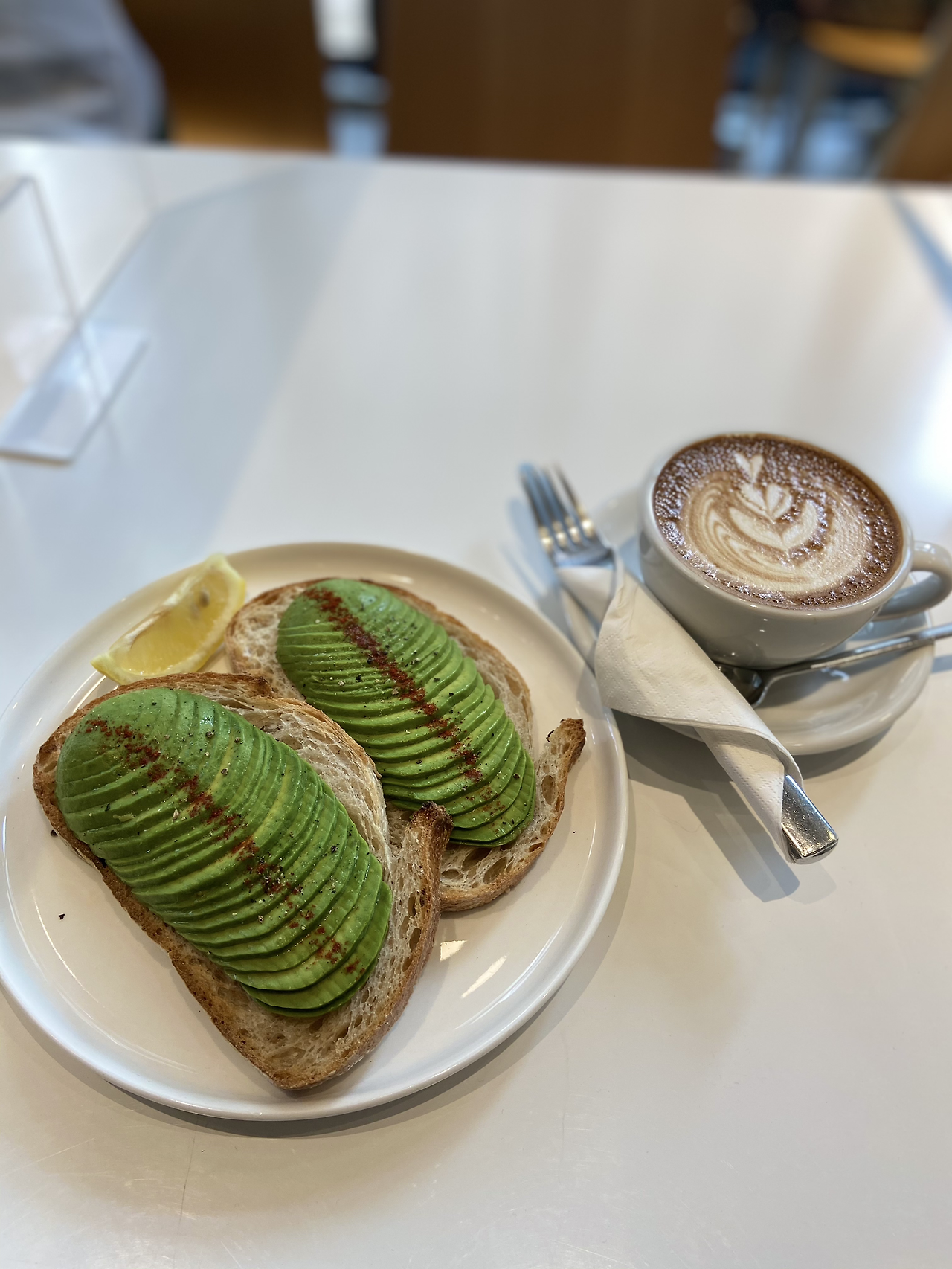 플랫 화이트와 아보카도 토스트 주문했다.