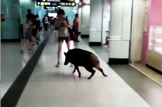 2019년 6월 케네디 타운 MTR에 나타났던 멧돼지.