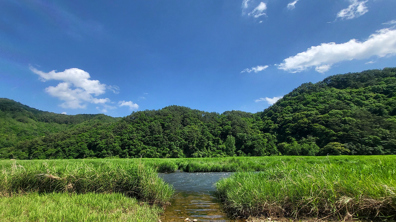 초여름에 어울리는 사진을 골라봤습니다. 청량한 물소리와 물가에 핀 수풀, 그 위를 날아다니는 물잠자리면 초여름 분위기가 물씬한 것 같습니다.