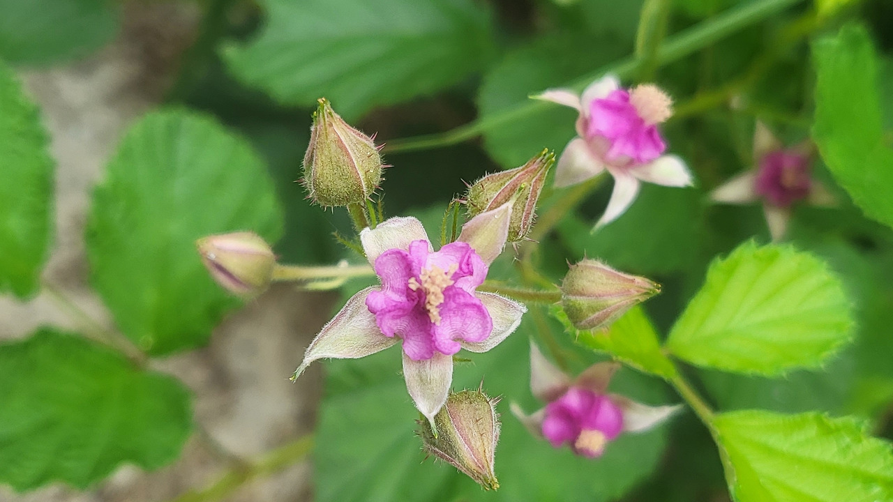 무슨 꽃일까요? 저도 난생처음 본 산딸기 꽃이랍니다. 하늘 아래 같은 분홍색은 없다는 말처럼, 꽃들을 보며 그 말을 실감합니다. 어쩌면 꽃마다 다른 색을 내는지요. 그래서 이 분홍색이 진한 쪽에 속하는지 연한 쪽에 속하는지 헷갈립니다. 색은 참 곱네요.
