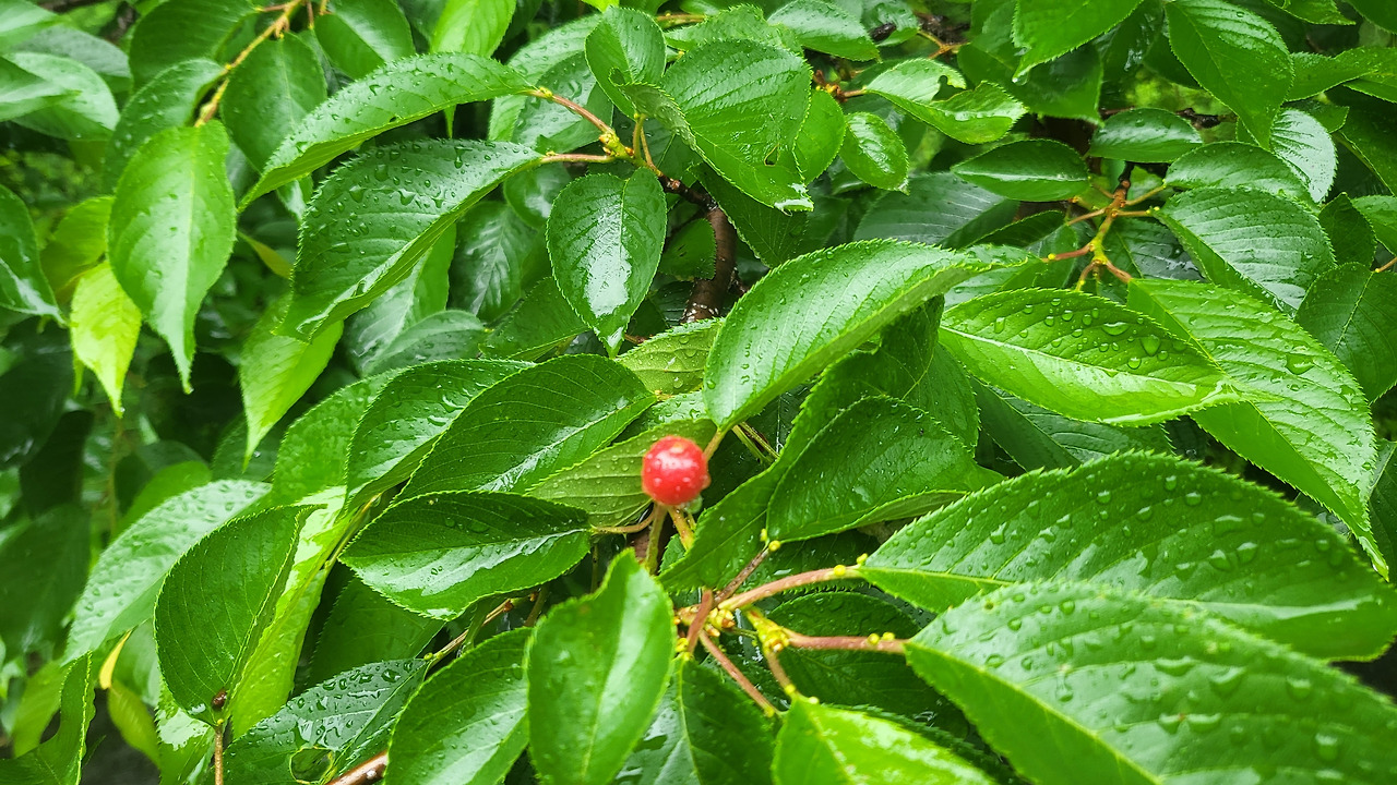 닮은 듯 다른 버찌열매와 앵두는 비가 오는 날 영롱한 빨간빛을 반짝거리며 눈에 띄었습니다. 빗물에 말끔하게 씻겨 어찌나 먹음직스럽던지. 그래도 먹기에는 왠지 아까웠습니다. 특히 앵두를 본 것이 너무 오랜만이라 반가운 마음이 들었습니다. 어린 시절, 친구들과 앵두나무 아래에서 그 많던 앵두를 다 따먹기 전까지 떠나지 않았던 기억이 나네요.
