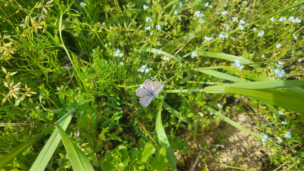 나비는 꽃을 참 좋아합니다. 풀잎이나 나뭇잎 말고 꼭 꽃잎 위에서만 앉아서 쉬어요. 그래서인지 꽃잎에 앉아 있을 때는 얌전합니다. 꿀을 먹는지 가까이 다가가도 달아나지 않네요. 꿀이 달아서겠지요. 날개가 있으니 언제든 쉽게 달아날 수도 있고.