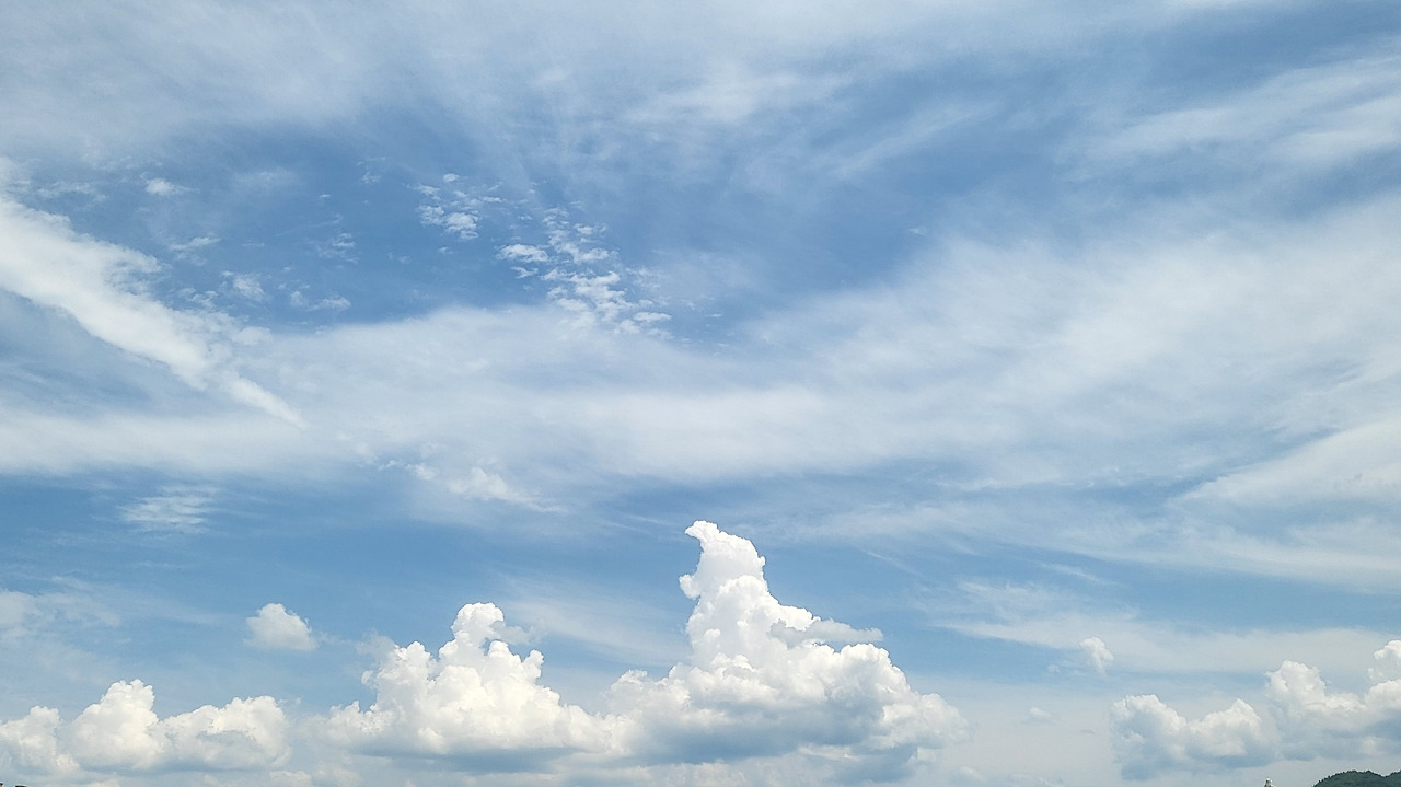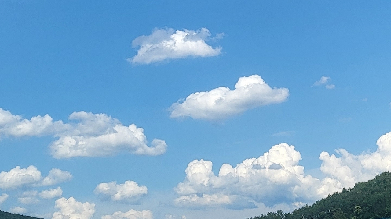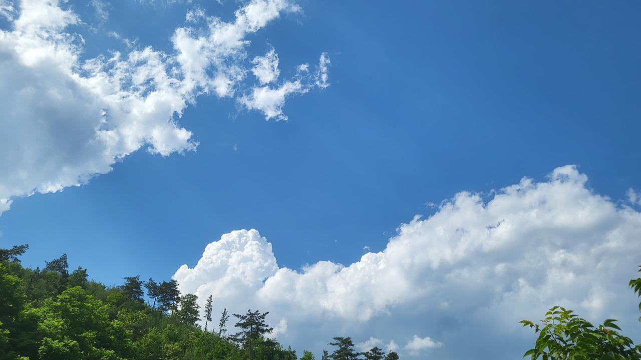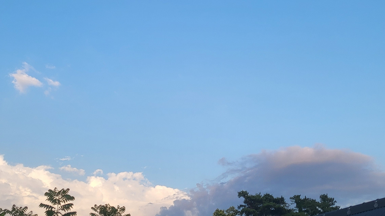 하얀 구름과 회색 구름이 만났지만 아무 일도 일어나지 않았습니다. 서로의 모양을 흩트리지도 색을 바꿔놓지도 않았습니다. 파란 하늘 아래에서 고요히 머물다 사라졌습니다.