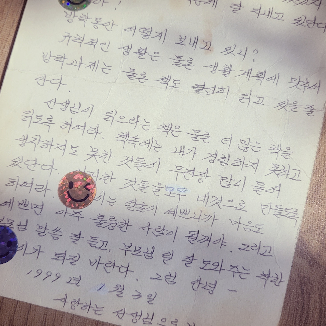 선생님의 기억 속에 저는 어떻게 남아 있을지 궁금했는데, 사소한 것을 기억해 내시며 어린 시절처럼 이런저런 칭찬을 주시네요. 받은 칭찬만큼 잘 자라나지 못한 것 같아 부끄러웠습니다.