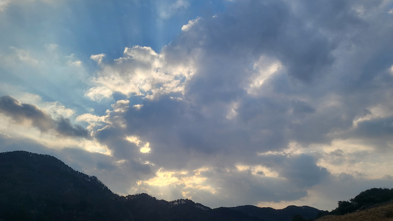 반면 하늘은 자주 변덕스럽고 빠르게 변한다. 구름은 빈틈없이 하늘에 들어찼다가도 한 점 없이 하늘을 비우기도 했다. 해질 무렵의 하늘을 바라보다 보면 몇 번이나 사진을 찍게 되는 데, 매 순간 다른 예쁨을 보게 되어서 그렇다. 어제는 오후 세시에 오늘은 네시에 산책을 나서면 틀림없이 다르다.