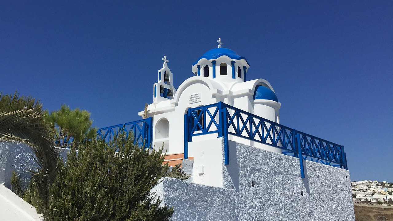 긴 항해 끝에 도착한 9월 중순의 산토리니는 더웠다. 한창 해가 쨍쨍한 오후 세시였다. 수많은 도화지속에서 내 이름을 발견하고, 땀을 흘리고 선 주인아저씨를 향해 다가갔다. 볕 아래 더 서있지 않게 되어 반갑다는 듯 미소로 반겨주신다.