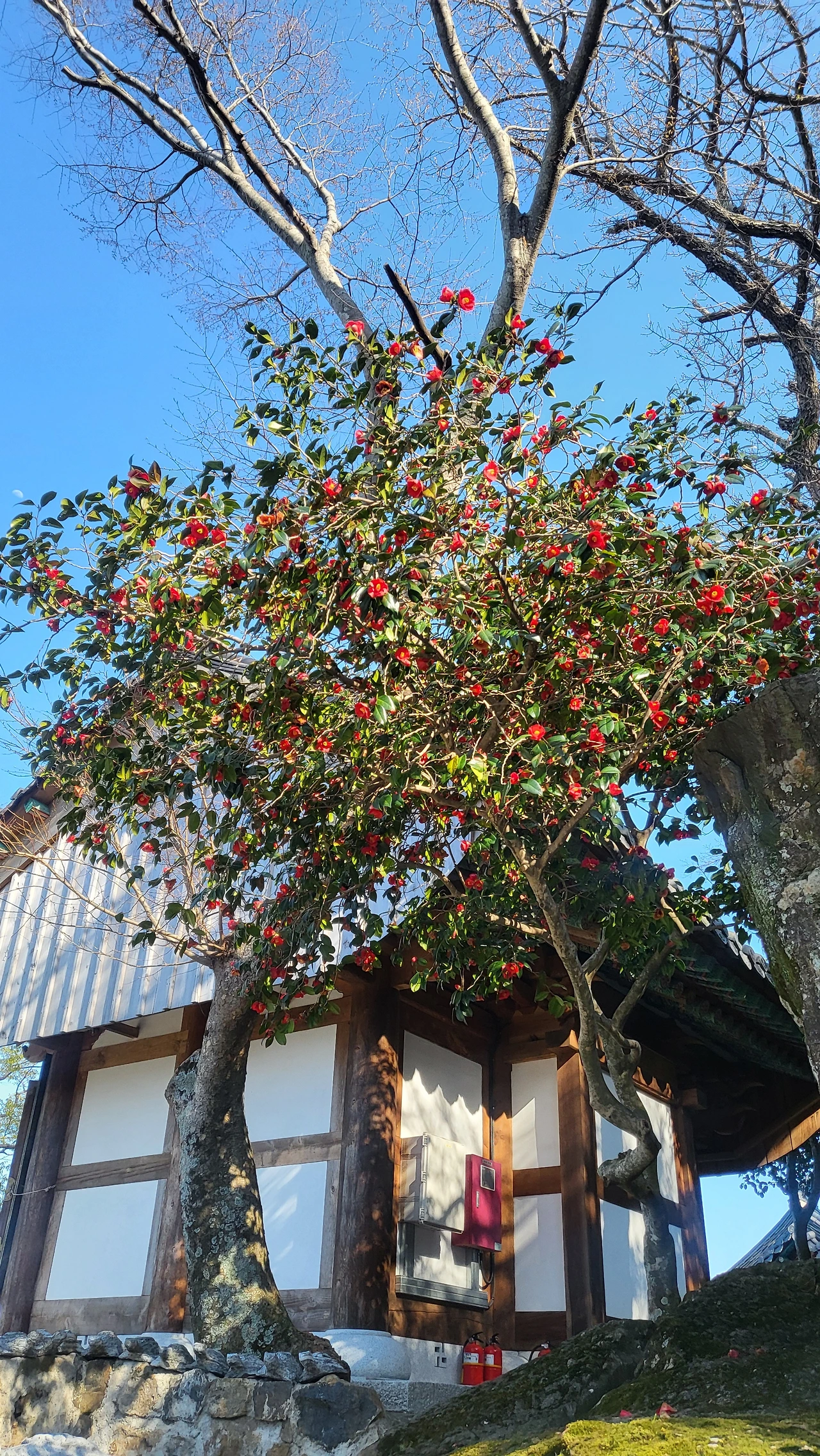 숙소 가기 전 향일암이라는 절을 가기로 다시 일정이 추가되었습니다. 높이 더 높이. 정말 오고 싶은 사람만 오세요, 그렇게 말하는 것처럼 향일암을 가는 길은 약간 숨이 찼습니다. 계단을 오르다 보니 곳곳에 동백꽃이 지고 있었고 그 나무 뒤로 하늘 같은 바다가 떠있었습니다.