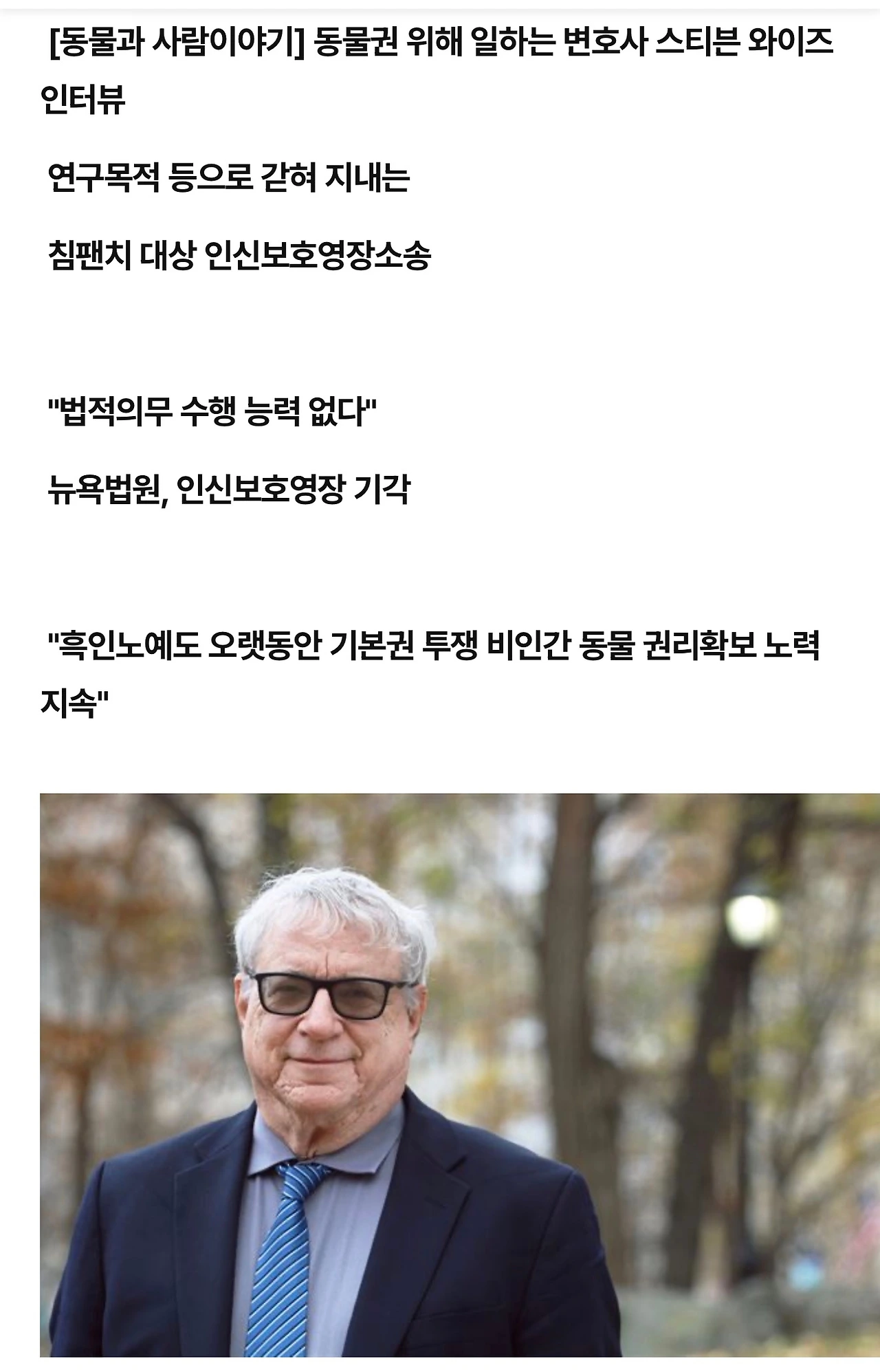 Steven Wise는 ‘인간 vs 비인간’이 아니라 ‘자유의 주체가 될 수 있는가’가 기준이라고 주장합니다.