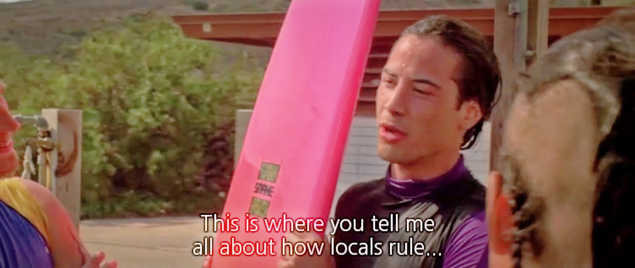 서핑을 문화와 삶의 방식으로 이해하고 싶은 지역 주민, 사업가, 행정가에게, 영화 <폭풍 속으로 Point Break>를 추천합니다. 여성 감독 캐스린 비글로우가 불량기 넘치는 서핑 패거리들의 이야기를 담은 영화인데요, 뜬금없이 영화를 추천하는 이유는 이 영화가 서핑 문화의 여러 측면을 스케치하듯 보여주기 때문입니다. 영화 만으로도 충분히 재미있고요.