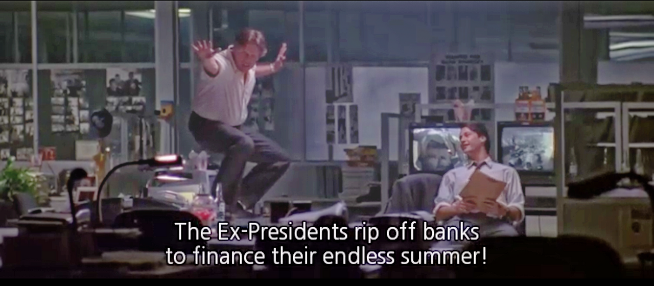 낮에는 파도를, 밤이면 파티를 즐기고 인생을 행복하게 삽니다. 현재의 삶에 관심 있고, 오늘의 파도에 집중합니다. 그리고 언젠가 만날 파도를 꿈꾸며 삽니다. 누군가 해변에서 뛰어오며 '좋은 파도가 나타났어'라고 외치면, 서퍼들은 하던 일을 제쳐두고 바다로 뛰어갑니다. 용기, 모험심, 낙관적 태도, 파티, 술, 음악이 독특하게 어우러진 매력 인생들입니다. 이런 삶에 한번 빠져들면 쉽게 도시의 반복된 삶에 적응하기 어렵습니다. 보헤미안이 되어 세상을 떠돌면서 궁극의 파도를 만나는 것을 인생의 목표로 삼기도 합니다. 영화 속 서퍼 일당이 독특한 방식의 은행 강도짓을 하는 이유도 최소한의 경제적 여유를 가지고 서퍼의 삶을 유지하고 싶기 때문입니다.