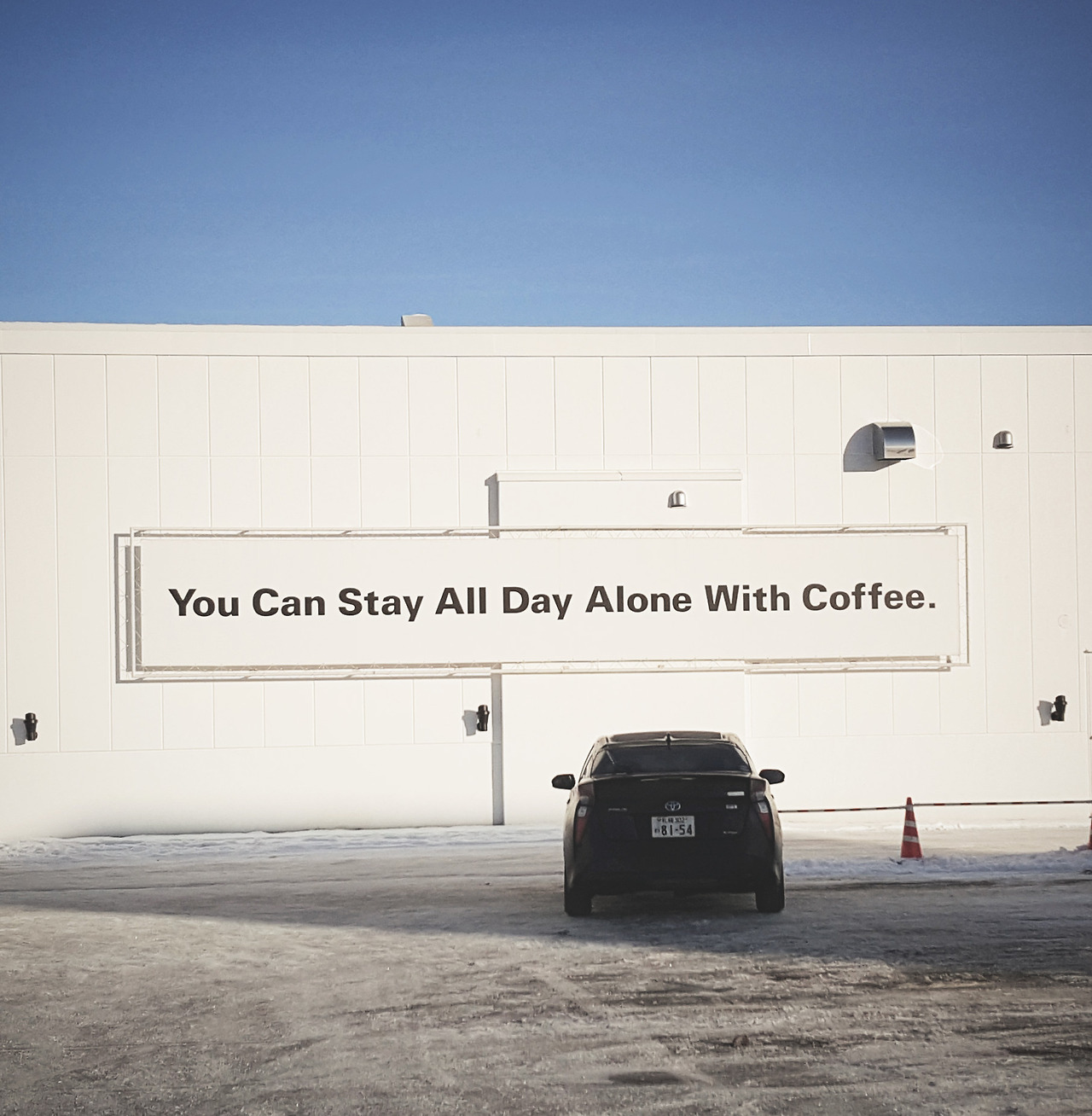삿포로 외곽의 한적한 길을 헤매고 있는 차에 멀리 노란 불빛을 켜둔 건물이 보였습니다. 발길이 그 방향으로 향했습니다. 가까이 가서 보니 커다란 유리창 너머로 사람들이 하나 둘 모여 커피와 맥주를 마시고 있습니다. 은은한 음악이 유리문을 넘어 눈보라 치는 거리로 새어 나옵니다.