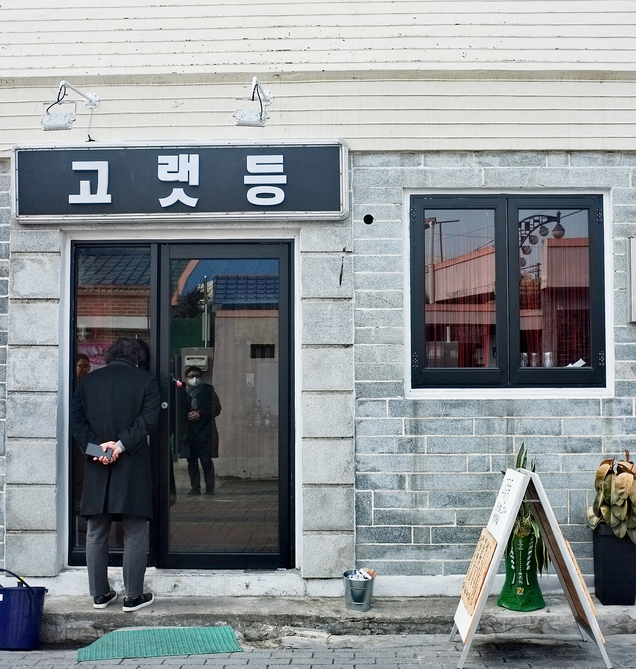 자, 여기까지가 1차. 윤주선 박사는 또다시 '반드시 확인'해야 할 곳이 더 있다며 우리를 이끌었습니다. 2차는 월명동 <고랫등>. 갓 구워 따끈따끈한 새우전을 먹으며 이야기를 이어갔습니다. 밤이 깊었지만 활기 가득한 동네입니다.