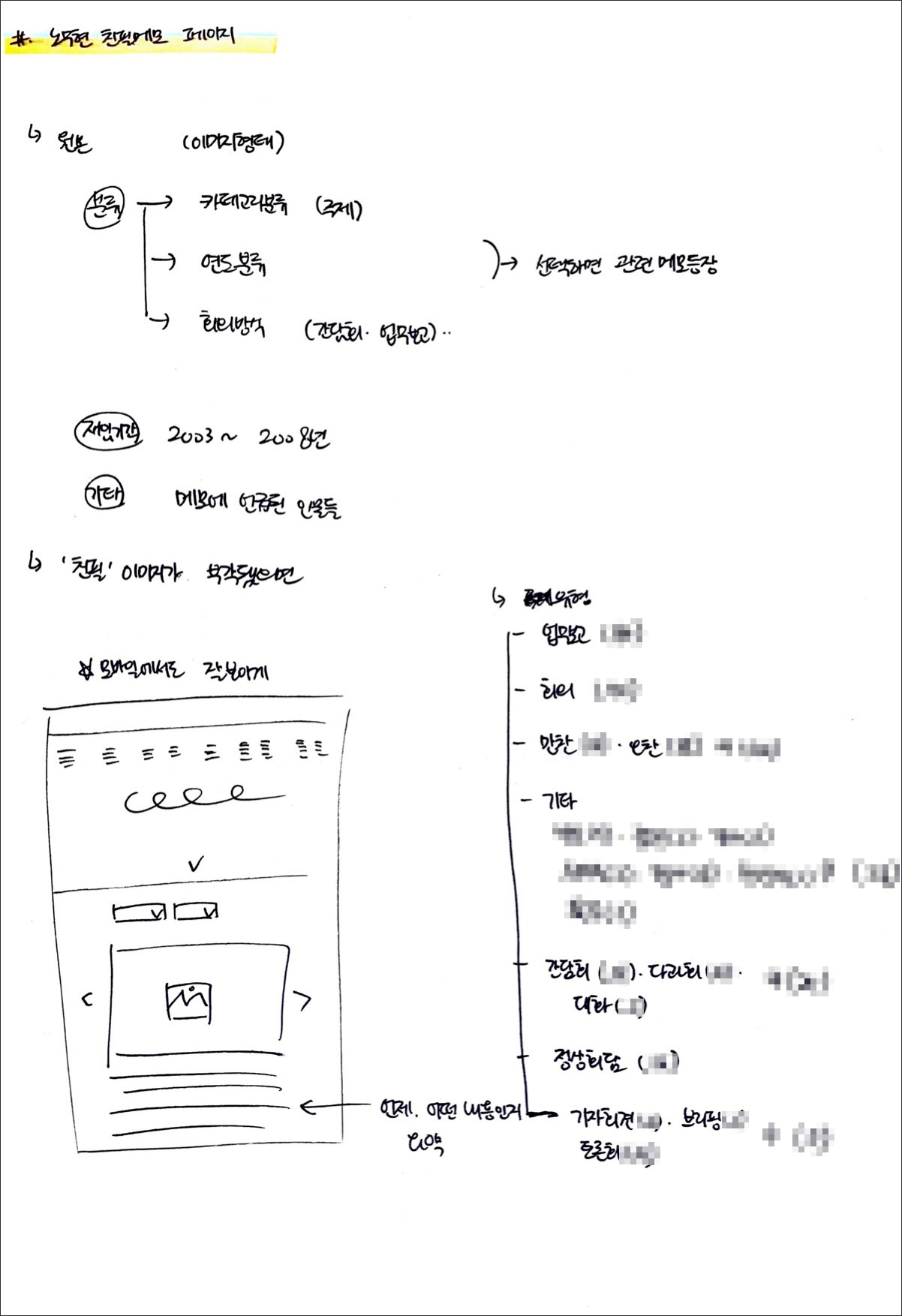 노무현 대통령이 남긴 메모를 독자가 보고 손글씨에 담긴 대통령의 생각을 느끼는 가치가 크기 때문에 메모 원본을 보여주는 게 중요했다. 그래서 처음 페이지에 들어갔을 때 대통령의 친필이 그대로 노출되게 만들었다. 그리고 주제를 선택하면 주제에 따라 메모를 모아서 볼 수 있게 설계했다. 또한 메모 첫 페이지에는 메모의 제목과 주제를 표기해 메모에 대한 정보를 함께 제공했다. 특정한 기능을 삽입하기보다는 대통령의 메모를 읽고 느끼는 데에 집중할 수 있도록 했다.