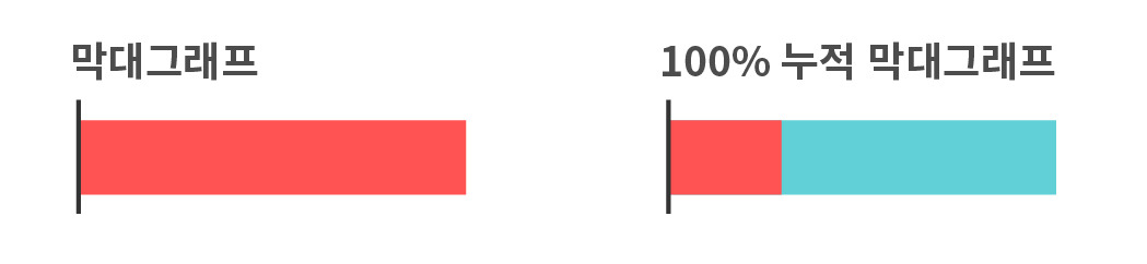 이제 데이터와 메시지를 전달하는 부분에서 차트가 가진 문제는 파악했다. 그러면 차트의 유형은 어떤 걸 선택해야 할까? 고치기 전 차트에서는 지연율만 보여주는 막대그래프를 사용했지만, 비율을 보여줘야 하기 때문에 전체를 분할하는 100% 누적 막대그래프를 사용하려고 한다.