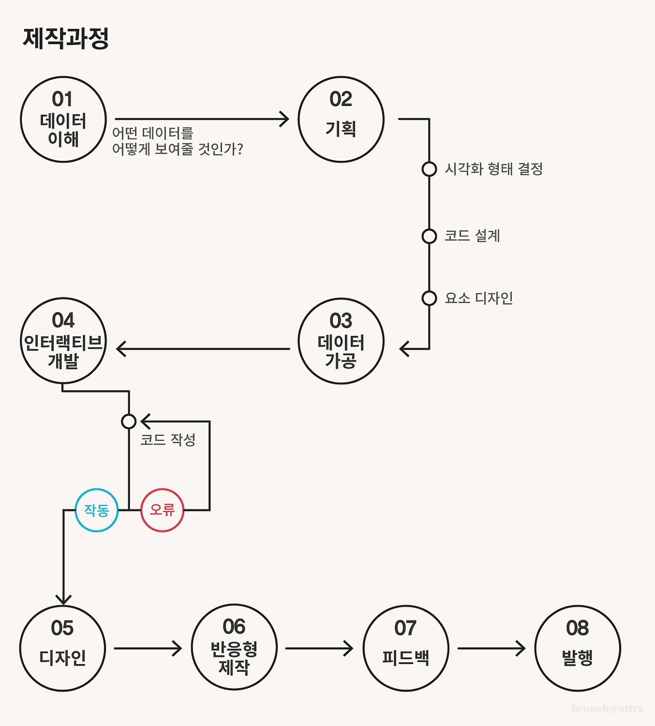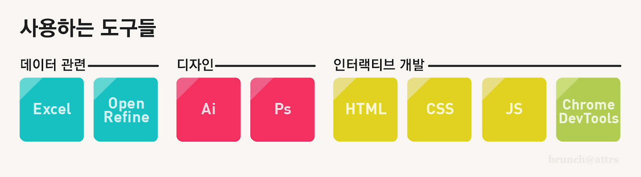 사람들이 인터랙티브 데이터 시각화를 보고 가장 많이 물어보는 것 중 하나는 "어떻게 만드나요?"다. 늘 답변하기 어려웠는데 그 이유는 사용하는 도구도 단계마다 바뀌고 작업과정도 단계마다 특징이 다르기 때문이었다. 그래서 이번 글에서 하나의 인터랙티브 데이터 시각화를 어떤 과정을 거쳐 제작하는지 정리하려고 한다.