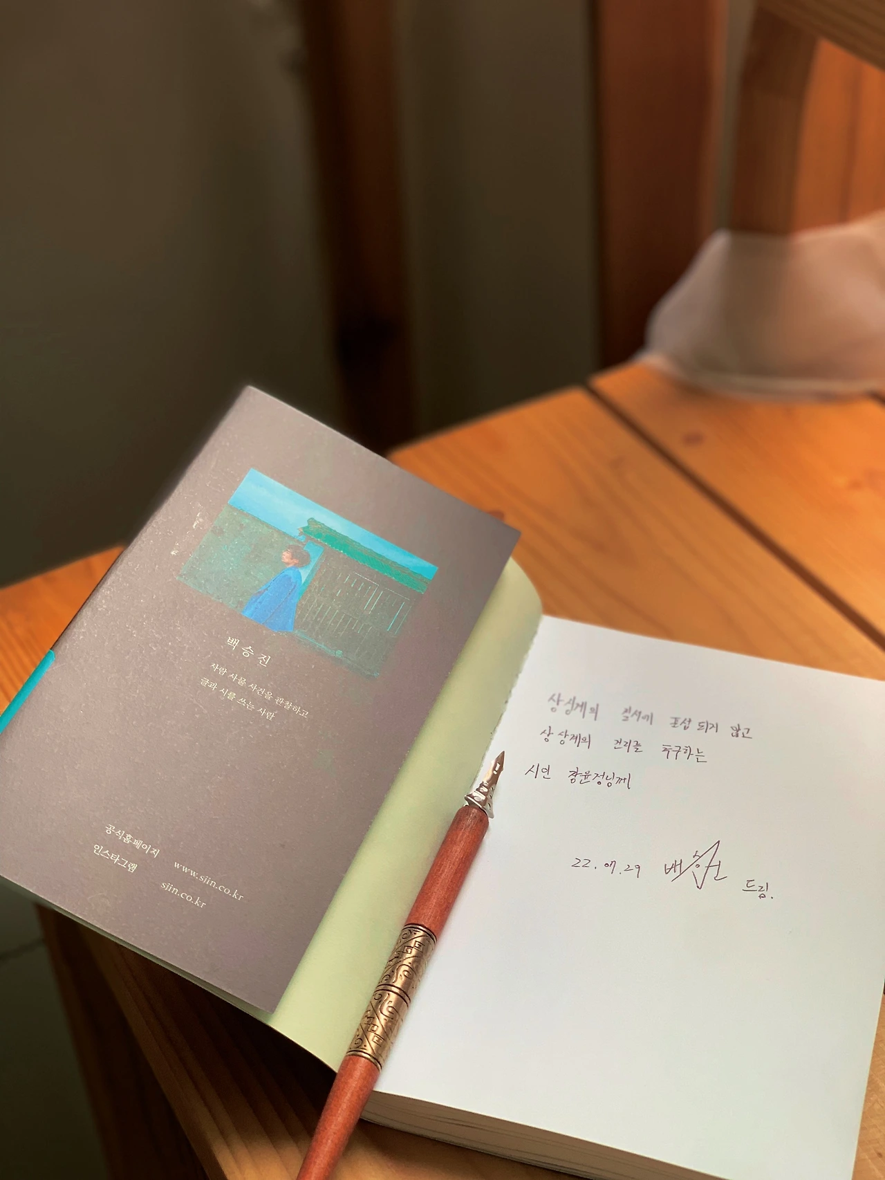 예술인들은 명함이 없다. 대신 무형을 노래함으로써 사람들 마음속에 각기 다른 모양의 명함을 꽂아주는 것이다. 좋은 감정을 가질지 나쁜 감정을 가질지는 그들의 몫이다. 이 책은 백승진 작가의 명함과도 같다. 책을 덮은 이후 내가 받은 명함은 기대감이라는 감정과 이토록 솔직하게 풀어냈다는 것에 대한 존경심, 또한 글과 시를 대하는 마음이 결코 가볍지 않음을 느끼게 한다. 좋은 책은 사람 하나를 살린다. 아니 여럿도 살린다. 잠재된 내면을 깨우고 사람을 다시 살게 하는 힘이라고 말할까. 그러나 모든 사람에게 그렇지는 않다. 경험은 실로 중요하다. 경험을 해본 자만이 다른 누구도 이해할 수 있다고 믿는다. 그중 더욱 뼈저리게 느낀 사람들, 고된 삶과 거친 피부로 느낀 사람들이 예술의 중요성과 고마움을 알기에, 주최가 되어 문학을 잇고자 하는 것이다. 그 과정이 담겼고 나는 그것이 너무나 뚜렷하게 보였다.