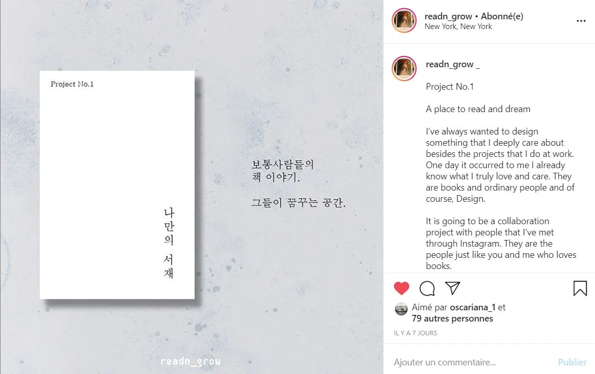 그녀가 인스타그램 (@readn_grow )에 피드를 올렸다.