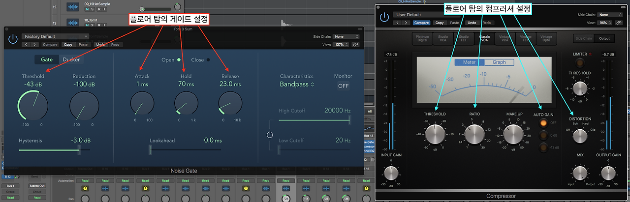 게이트와 컴프레서의 순서는 탐탐과 같고 세부조정을 하여 플로어탐에 맞게 설정해 보도록 하자.
