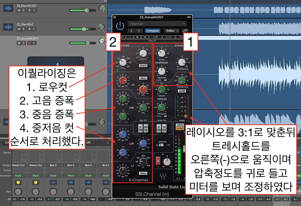 어쿠스틱 기타 2,3 트랙 믹싱은 다음의 체크 포인트를 활용하여 믹스하여 보자.