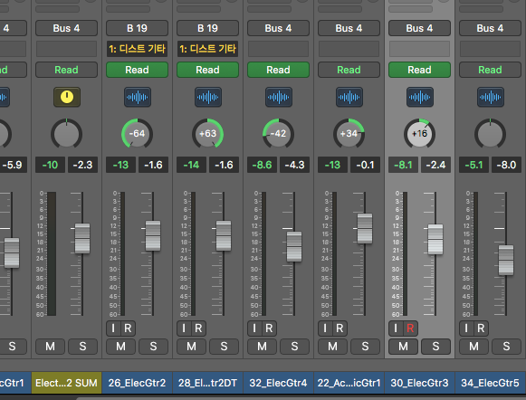 2. 패닝 : 일렉기타의 패닝과 비슷하게 할 것이가? 아니면 전혀 다른 패닝을 할 것인가?