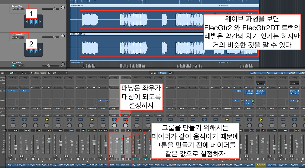 일렉기타4 트랙과 일렉기타3 트랙을 이용한 대칭형 믹스