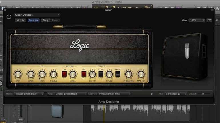 로직에 번들로 있는 앰프 디자이너에는 상당한 양의 앰프가 내장되어 있다. 각 프리셋마다 모델로 한 앰프와 케비넷 그리고 마이크의 선택이 각 각 다르니 각 프리셋이 어떤 앰프로 모델로 구현되었는지 확인하고 믹싱하는 장르에 따라 선택하면 된다. 앰프 시뮤레이션 프로그램들이 다양하게 출시되어 있지만 사용 방식은 각 프리셋을 믹싱하는 장르에 적합하게 선택하는 방식은 동일하다. 그러니 각 프리셋 파악을 위해 약간을 시간을 투자하면 훨씬 멋진 기타 사운드를 구현할 수 있을 것이다. 앰프와 케비넷 그리고 마이크를 잘 조합하여 보자.
