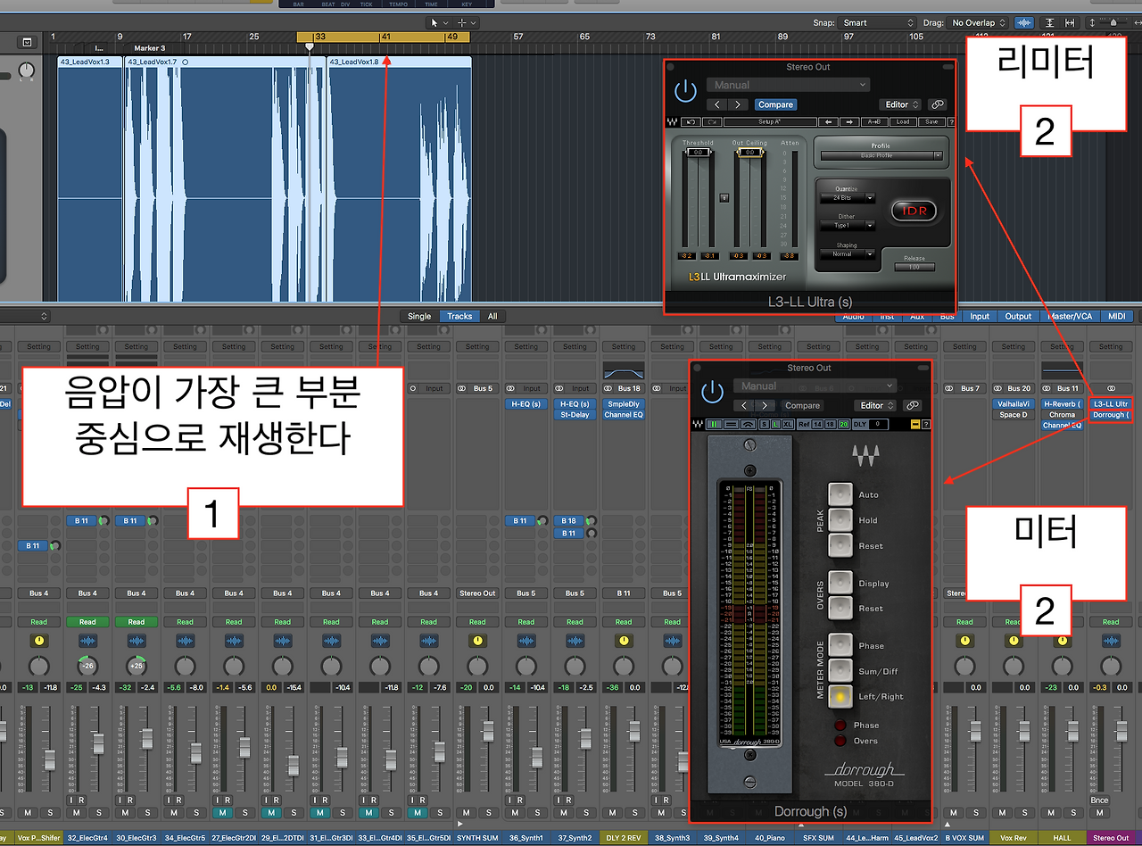 1. 두 플러그인은 모두 출력단에 설치하는데 먼저 리미터를 설치하고 그 뒤에 미터를 설치한다.