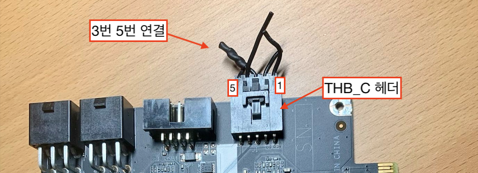 Thunderbolt 헤더의 3번과 5번을 점퍼하지 않으면 부팅 시 컴퓨터가 얼어버리는 현상이 있다고 하여 헤더 점퍼를 하였다.
