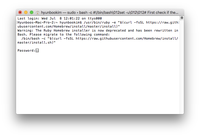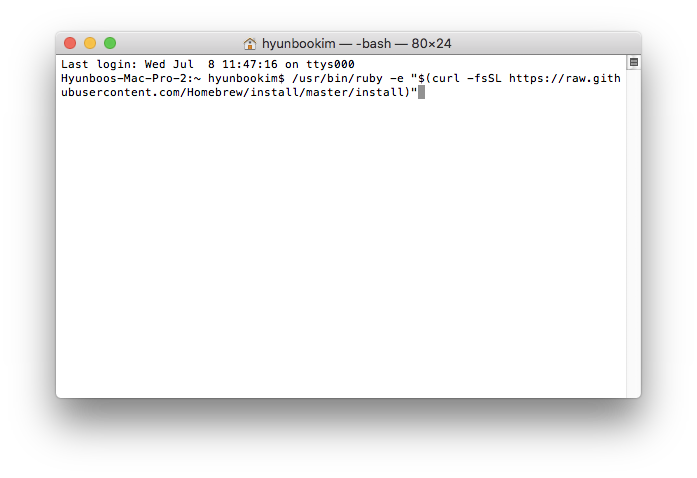 /usr/bin/ruby -e "$(curl -fsSL https://raw.githubusercontent.com/Homebrew/install/master/install)"