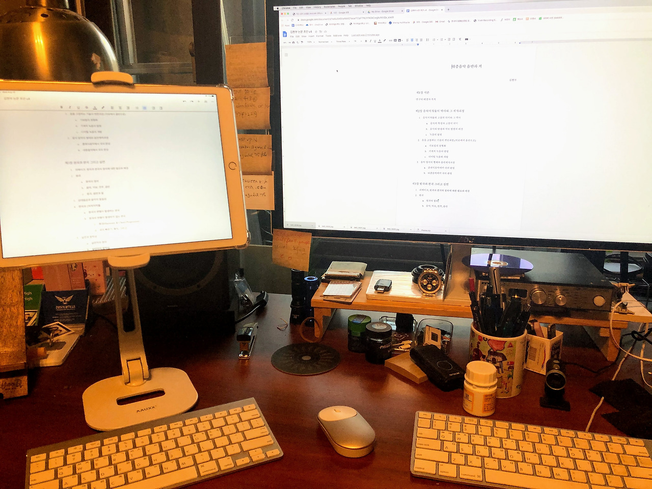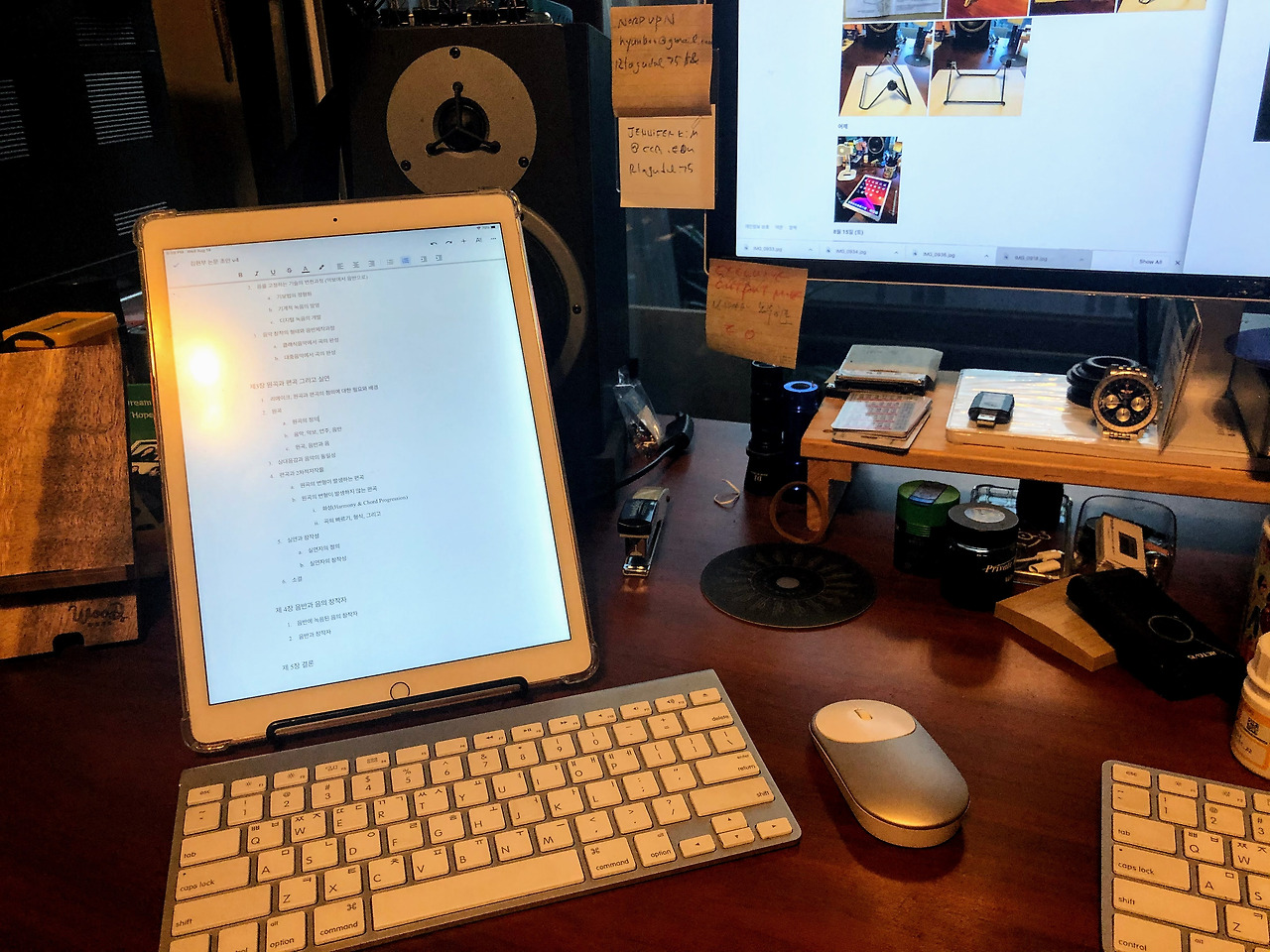 이제는 문서 작업도 컴퓨터 모니터와 대등한 높이로 맞출 수 있었다. 아이패드, 키보드, 마우스, 그리고 거치대만 있으면 어디든 내 작업실이 될 것 같은 생각이었다. 하지만 묵직한 거치대의 무게가 마음에 걸렸다. 들고 다닐 수 있을까?