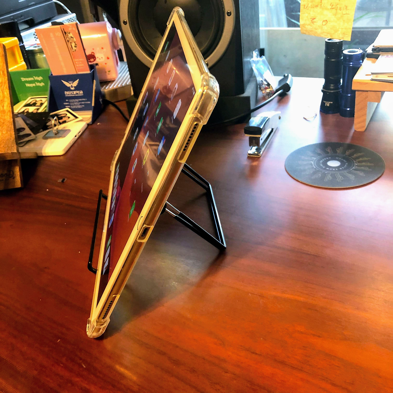 마음 같아서는 어디든 들고 다니며 고개 편하게 아이패드를 사용하고 싶지만 든든한 무게가 오히려 휴대성을 떨어뜨려 집 밖으로 들고 다는 것은 깨끗하게 포기하고 외부로 나갈때는 다이소 거치대를 들고 다니기로 했다. 아픈 목에는 미안하지만...