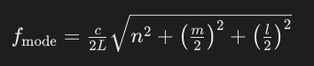 두뇌를 활용하기 위해 위의 공식을 사용하여 각 변의 길이를 대응하여 기본 공진주파수와 배음 공진주파수를 계산해 보는 것을 추천하지만, 다음 웹페이지를 사용하여 각자의 방에서 공진주파수를 들으며 파악해 보는 것도 좋을 것이다.