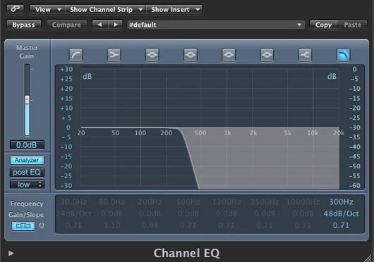만약 녹음한 기타에 저음이 너무 많아 웅웅거린다면