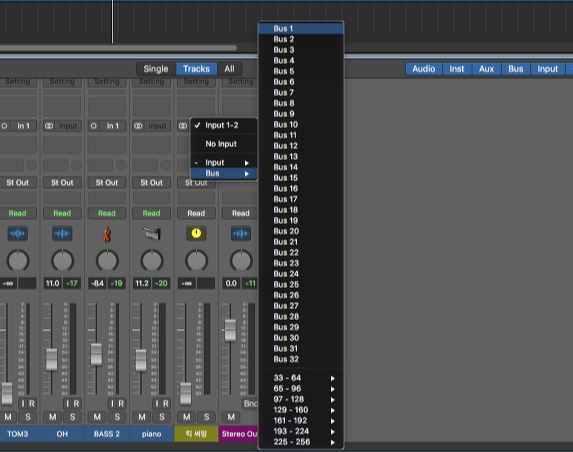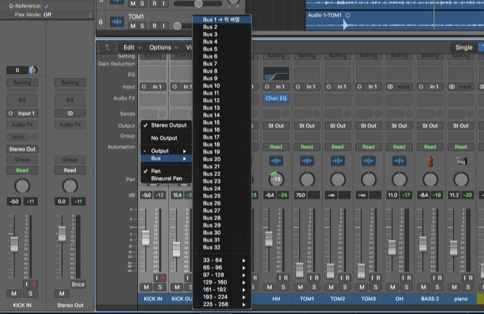 3. 킥 써밍의 인풋을 BUS로 설정하여 준다. BUS는 DAW에서 소리를 보내거나 받는 통로이다.