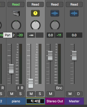키드럼을 솔로로 들으며 Stereo Out의 레벨이 -12dB정도 되게 페이드를 조정한다. 그 이유는 다른 악기들이 추가되었을 때 전체 악기의 소리가 너무커서 Stereo Out에 빨간불이 들어오며 소리가 깨지는 현상을 막기 위함이다. 이 작업을 헤드룸을 확보한다고 이야기 한다.