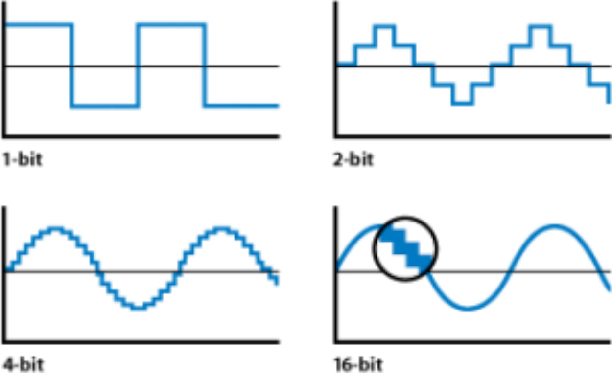 샘플레이트와 비트뎁스가 합하여지면 디지털 레코딩에서 소리의 해상도가 만들어진다.