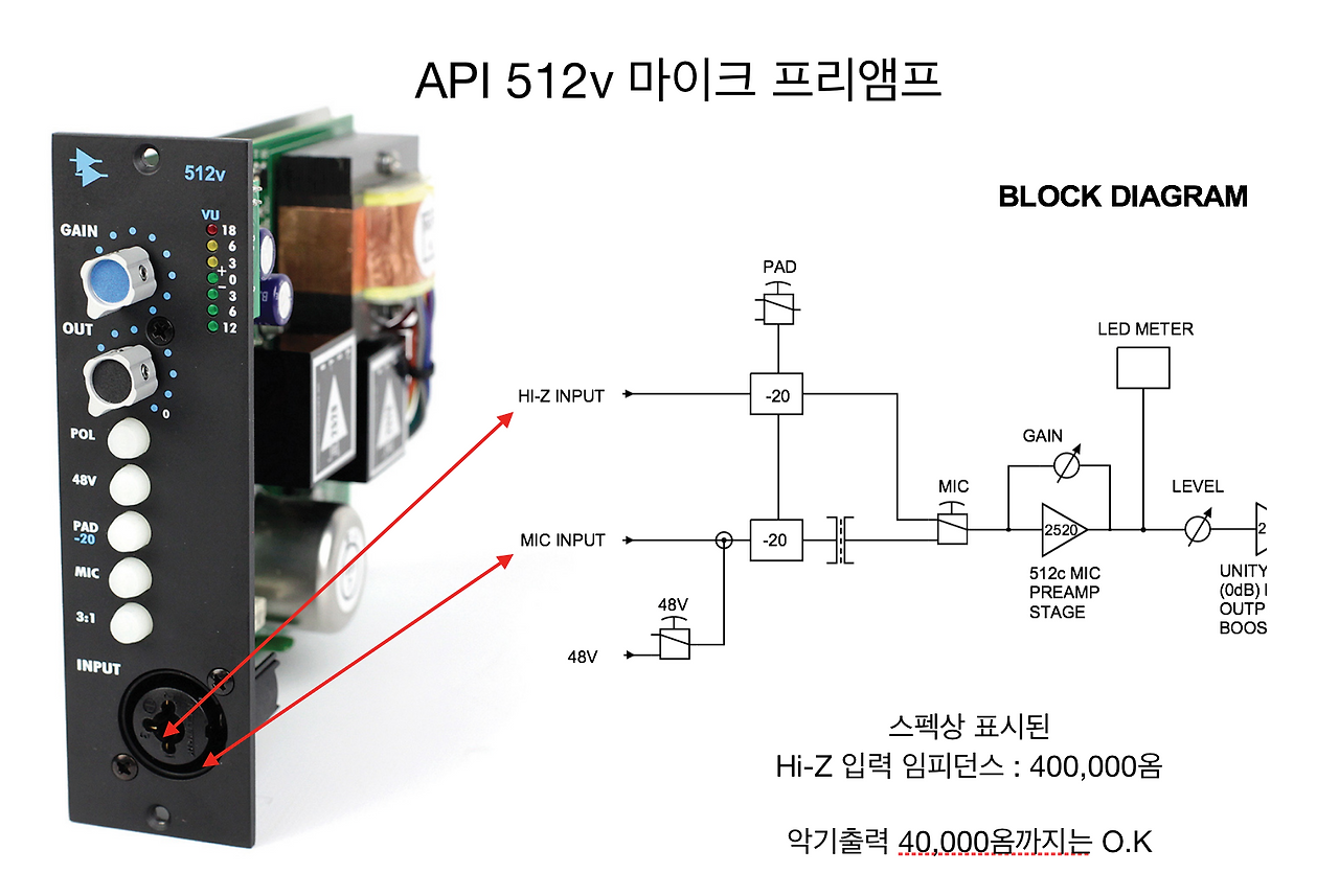 임피던스 매칭은 출력과 입력의 임피던스 비율에 관한 것인데 일반적으로 입력:출력 비율이 최소 1:10 정도가 되어는 것이 좋다. 다시 설명하자면 <베이스의 출력 임피던스 : 마이크 프리앰프의 INSTRUMENT 입력 임피던스>의 비율인데 일반적인 패시브 베이스의 출력임피던스가 약 10,000옴 이상이니 마이크 프리앰프와 INSTRUMENT 입력 임피던스는 100,000옴 이상이 되어야 한다는 말이다. 마이크 프리앰프 사용 설명서를 보면 스펙을 자세하게 나타낸 부분이 있다. 자신이 사용하는 장비의 특성과 기능을 알기를 원한다면 반드시 메뉴얼을 읽어 보기를 강력하게 추천한다.