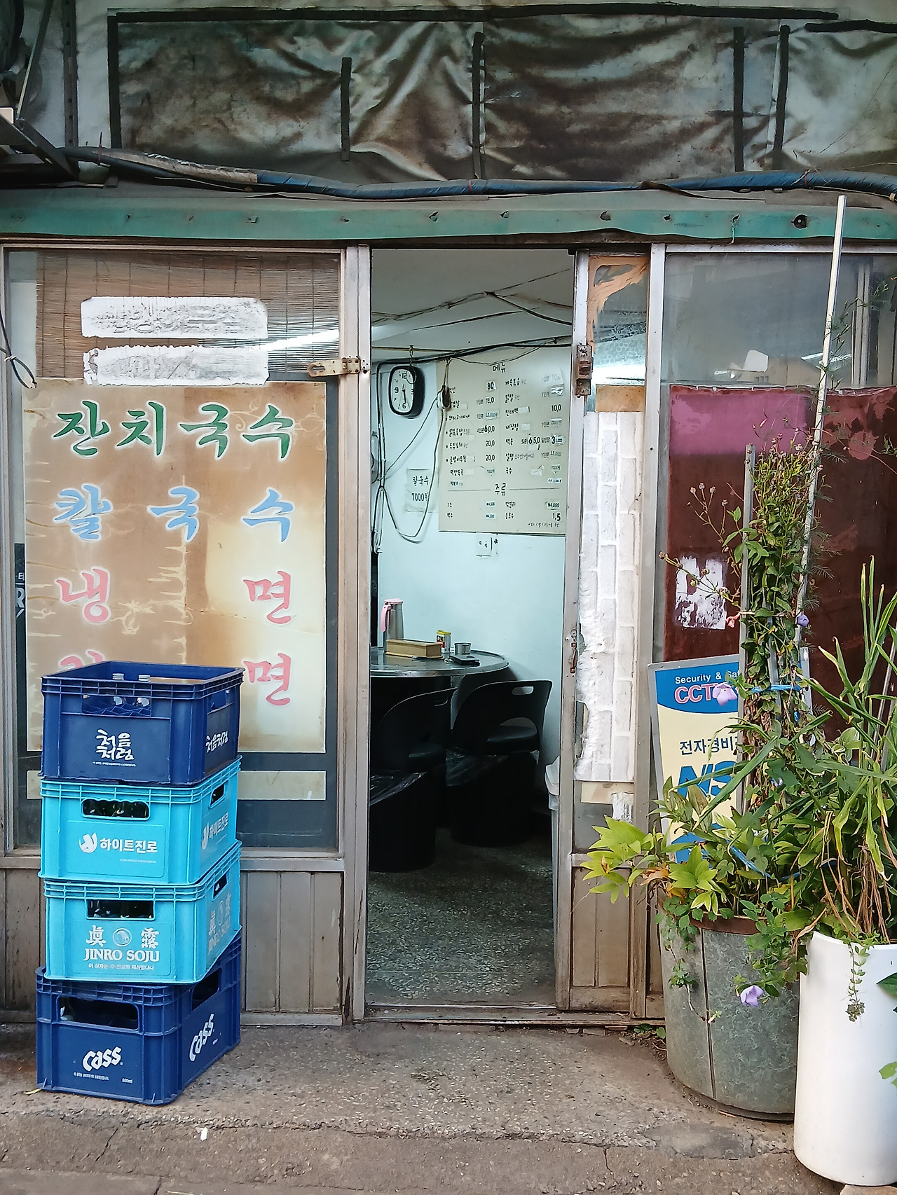 다섯 번째 스팟으로 정한 가게 앞을 지날 때마다 내부는 어떤 모습일지, 국수 맛은 어떤지, 주인분은 어떤 분이신지 살며시 호기심이 동한다. 트럭 옆에 붙어서 돌을 기웃거리듯이 열린 문틈으로 가게 안을 흘끔거린다.