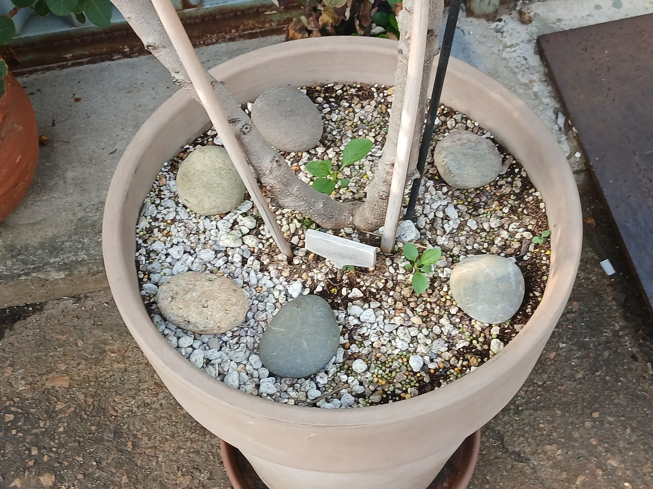 돌을 잘 지켜볼 거라는 믿음으로 선택했던 네 번째 스팟에 가보니 그동안 차곡차곡 쌓여있던 돌들이 보이지 않았다. 어찌 된 영문일까, 고개를 갸웃하다가 공방 앞에 있는 화분에서 돌들과 재회했다.