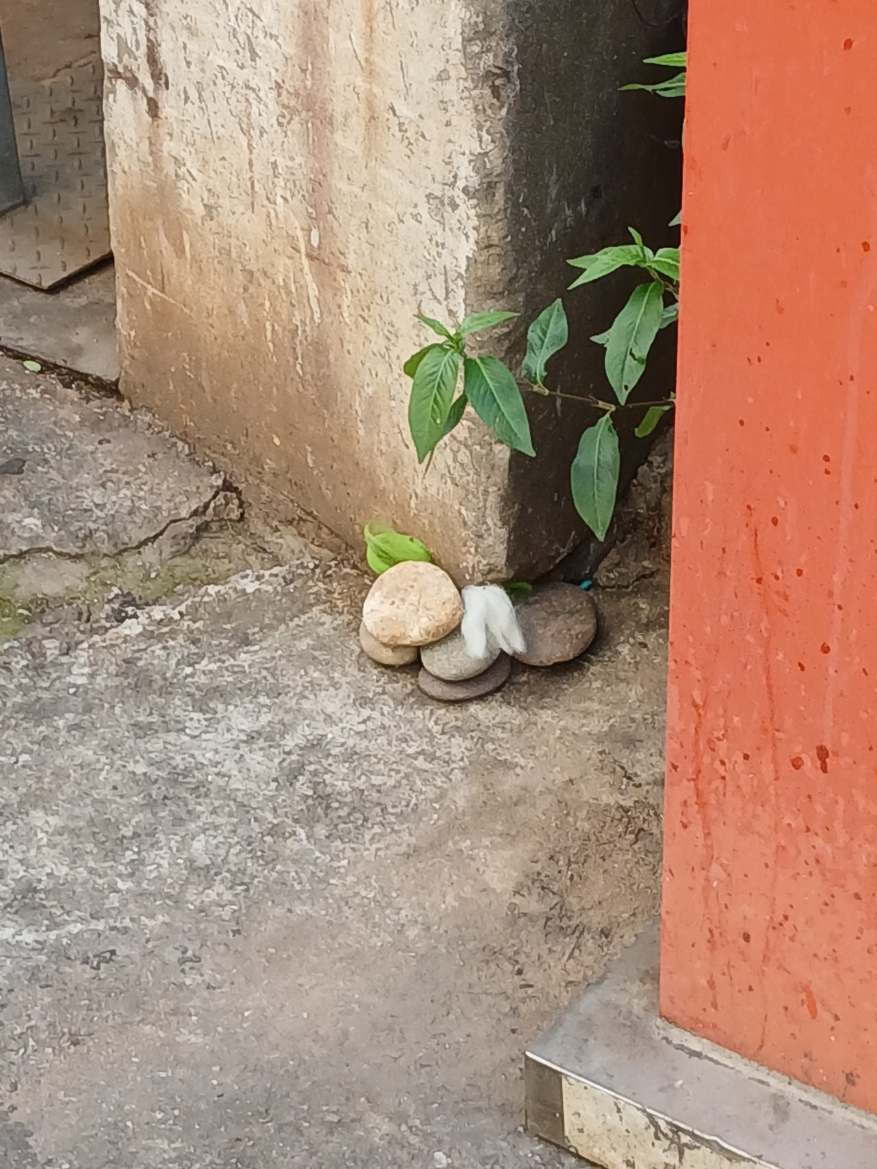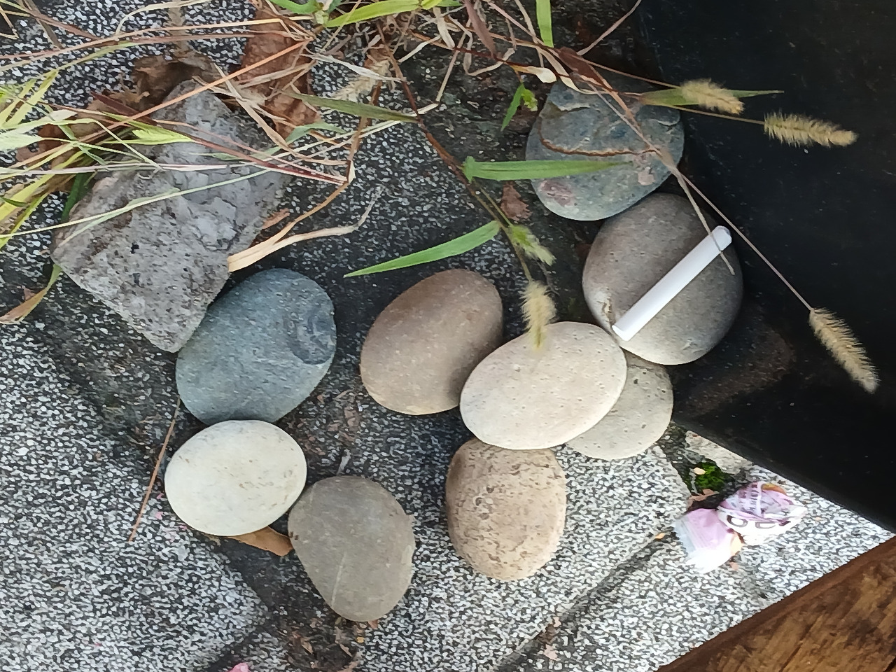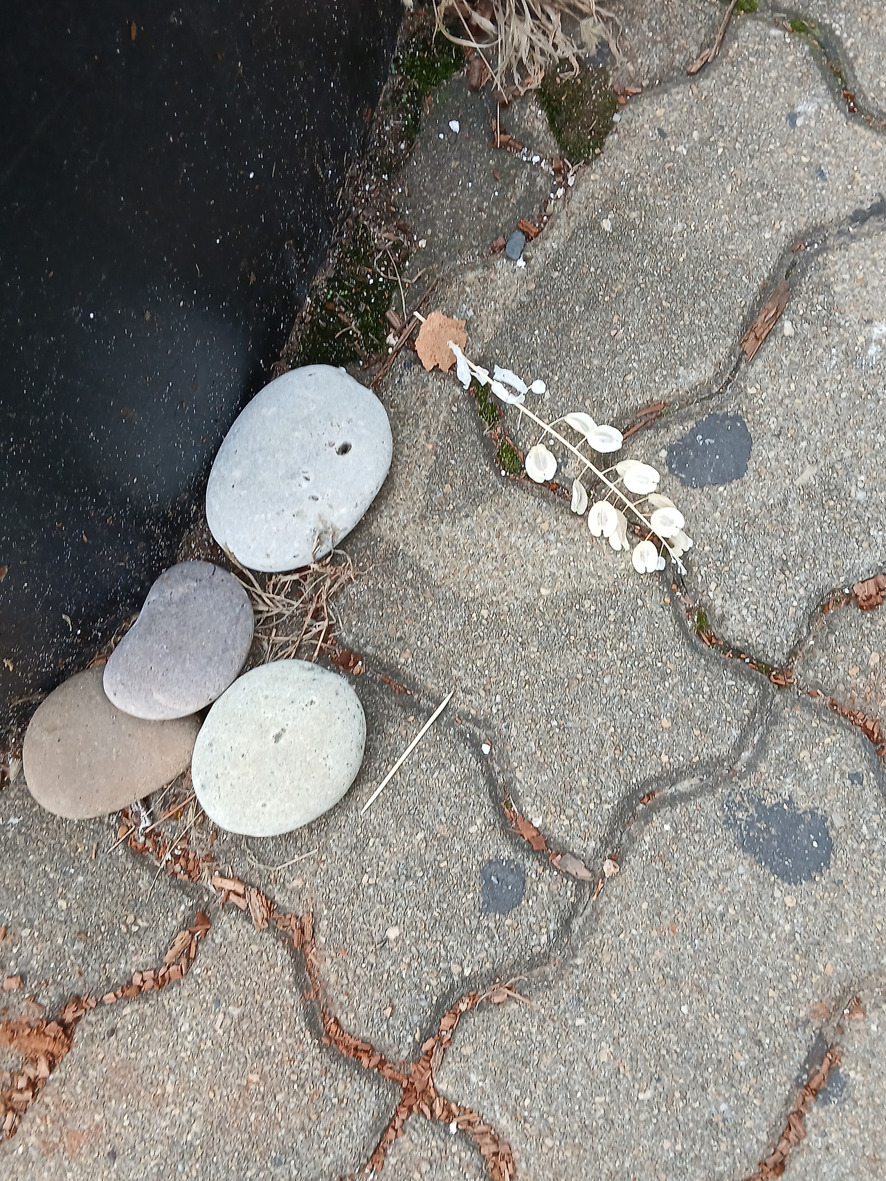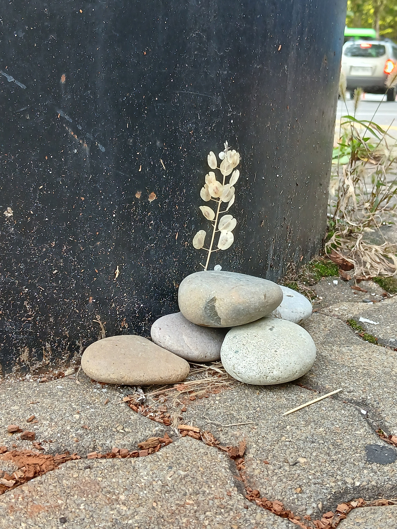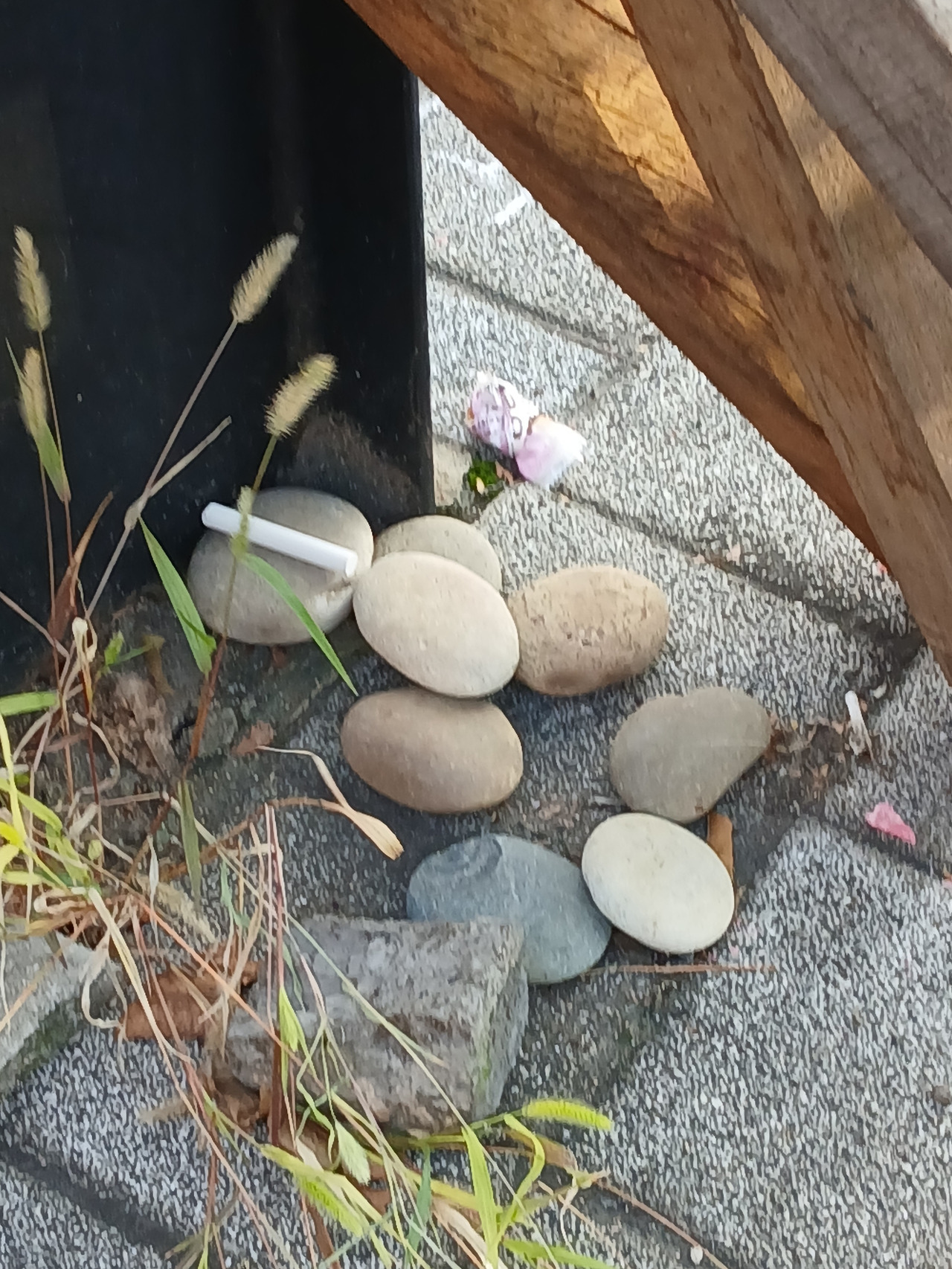 저 가벼운 친구가 누군가의 발길에 휩쓸려 가거나 바람에 날아가지 않고 돌 옆에 나란히 누워 있다.