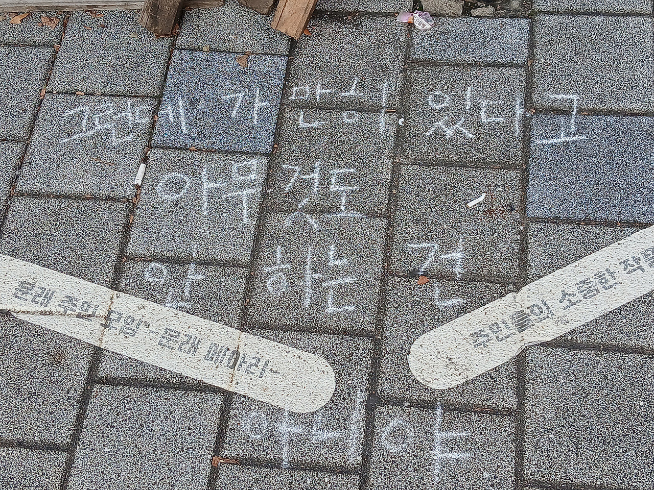 그리고 구석에 분필도 두고 왔는데 어제의 모습 그대로였다.