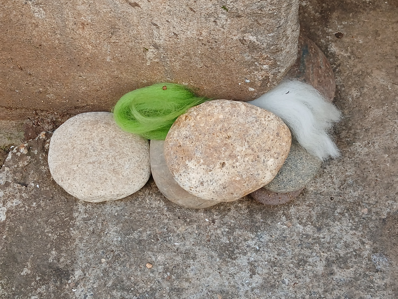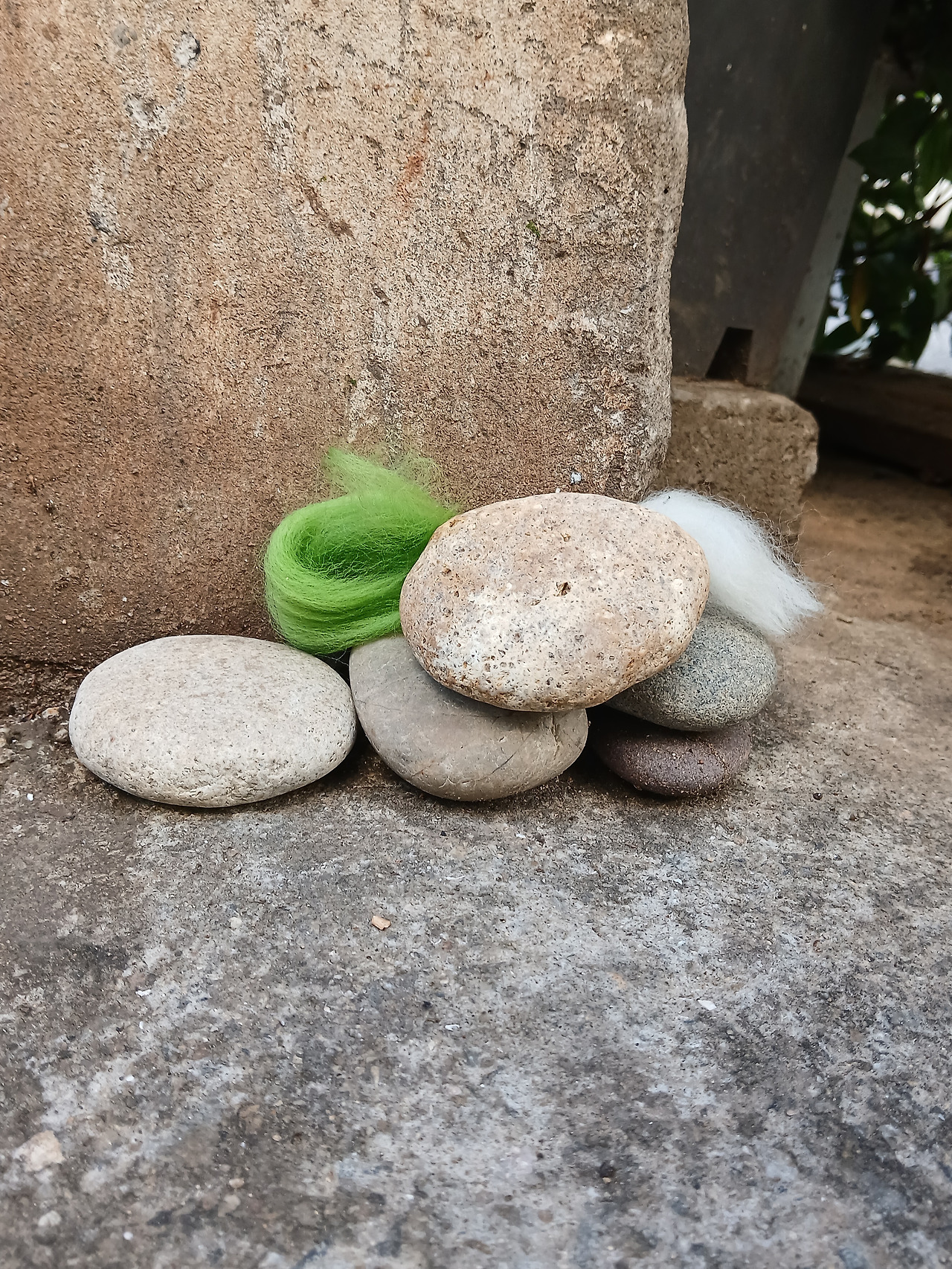 처음엔 빨간색과 초록색 양모펠트를 놓으려 했는데, 아무래도 색이 너무 튀는 거 같아 초록색과 흰색으로 바꾸었다.